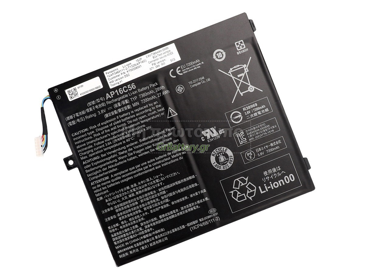 Δεν συνιστάται η αφαίρεση της μπαταρίας, έτσι ώστε να αποφευχθεί η συνέχιση της λειτουργίας της τροφοδοσίας εναλλασσόμενου ρεύματος σε περίπτωση ξαφνικής διακοπής, χωρίς απώλεια δεδομένων. Αν αφαιρεθεί, συνιστάται η περιτύλιξη της μπαταρίας Acer AP16C46(1ICP4/68/111-2) στην πλαστική μεμβράνη και η τοποθέτηση σε στεγνό και δροσερό μέρος, και να θυμάστε να χρησιμοποιείτε την μπαταρία τουλάχιστον μια φορά το μήνα και να την φορτίζετε για να αποφύγετε την απώλεια δράσης της μπαταρίας.