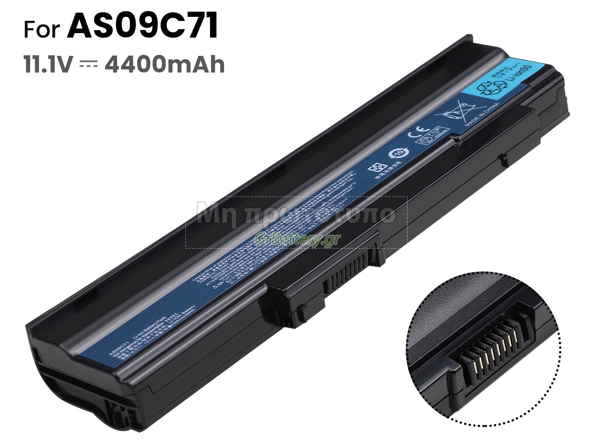 Δεν συνιστάται η αφαίρεση της μπαταρίας, έτσι ώστε να αποφευχθεί η συνέχιση της λειτουργίας της τροφοδοσίας εναλλασσόμενου ρεύματος σε περίπτωση ξαφνικής διακοπής, χωρίς απώλεια δεδομένων. Αν αφαιρεθεί, συνιστάται η περιτύλιξη της μπαταρίας Acer AS09C71 στην πλαστική μεμβράνη και η τοποθέτηση σε στεγνό και δροσερό μέρος, και να θυμάστε να χρησιμοποιείτε την μπαταρία τουλάχιστον μια φορά το μήνα και να την φορτίζετε για να αποφύγετε την απώλεια δράσης της μπαταρίας.