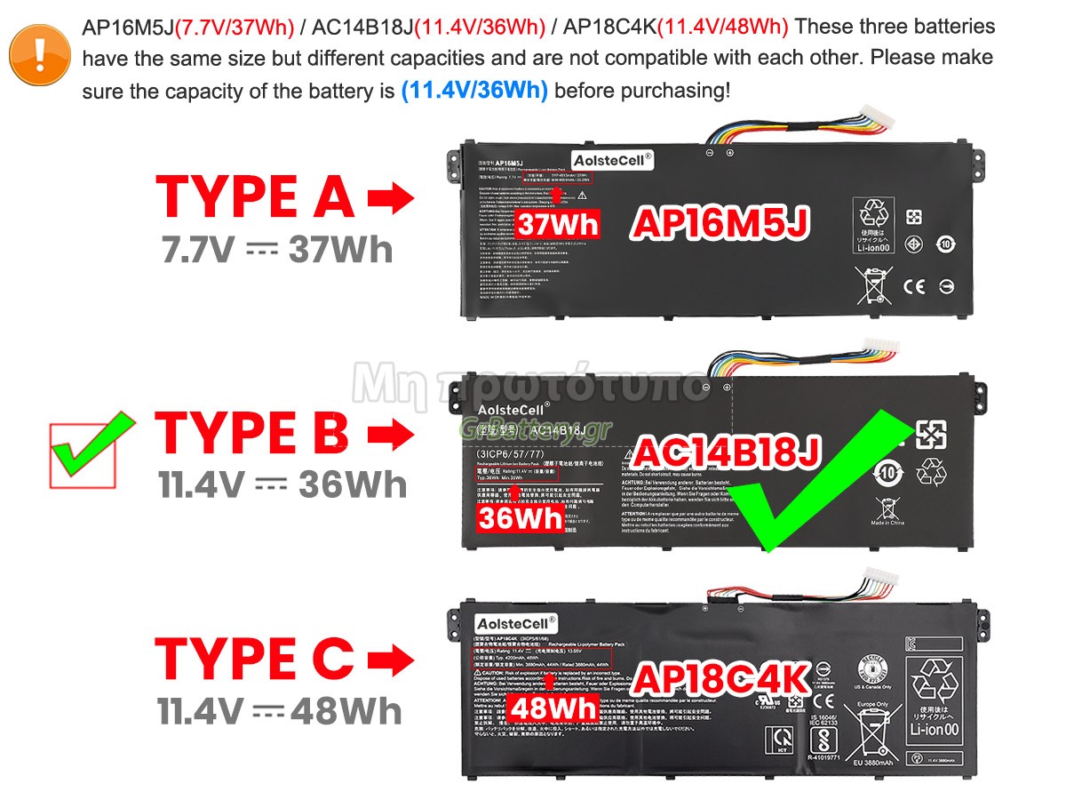 Only fit for the battery model: AC14B18J or AC14B13J. Before placing an order please check your old battery first.