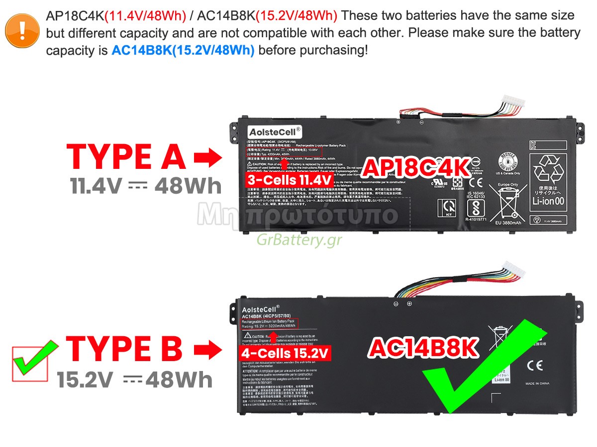 Before placing an order, please ensure your old battery is 15.2V 48Wh(4 cell), not a 11.25V, 3 cell battery. Η εντελώς νέα μας εφεδρική μπαταρία Acer SWIFT 3 (N17W7) αποτελείται από τα καλύτερα στοιχεία και εξαρτήματα. Οι μπαταρίες Acer SWIFT 3 (N17W7) που παρέχονται στο grbattery.gr έχουν περάσει δοκιμές UN38.3, RCM, CE, UL, ROHS, ISO9001/ISO9002 και άλλες διεθνείς πιστοποιήσεις. Προκειμένου να ελαχιστοποιηθούν οι κίνδυνοι ασφαλείας και να διασφαλιστεί η καλή εμπειρία του χρήστη, η μπαταρία φορητού υπολογιστή Acer SWIFT 3 (N17W7) χρησιμοποιεί μια ποικιλία μέτρων προστασίας. Για παράδειγμα, προστασία θερμοκρασίας, προστασία κυκλώματος, προστασία υπερφόρτισης, προστασία υλικού, όριο ρεύματος εξόδου και άλλα μέτρα προστασίας.