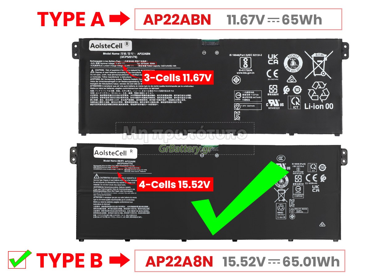 Δεν υπάρχει καμία διαφορά, εκτός από το ότι οι μπαταρίες μας δεν φέρουν ετικέτα. Όλες οι επαναφορτιζόμενες μπαταρίες που είναι διαθέσιμες στο xxx.com είναι εφεδρικές μπαταρίες του αρχικού κατασκευαστή. Χρησιμοποιούν τα ίδια έξυπνα τσιπ και στοιχεία όπως οι αυθεντικές, οπότε η απόδοση και η συμβατότητα της μπαταρίας Acer SWIFT GO SFG16-71 είναι παρόμοια ή και καλύτερη από την αυθεντικήεπαναφορτιζόμενη μπαταρία. Αυτό θα αφαιρέσει το τίμημα της μάρκας, διατηρώντας ταυτόχρονα την ποιότητα. Πολλοί καταναλωτές πιστεύουν ότι οι αυθεντικές μπαταρίες λειτουργούν καλύτερα. Στην πραγματικότητα, πολλές μάρκες μπαταριών για φορητούς υπολογιστές κατασκευάζονται επίσης από εξαρτήματα από τρίτους (όπως Samsung, LG, κ.λπ.). Ακριβώς όπως η CPU ενός φορητού υπολογιστή δεν παράγεται από τηνίδιαεταιρεία υπολογιστών.