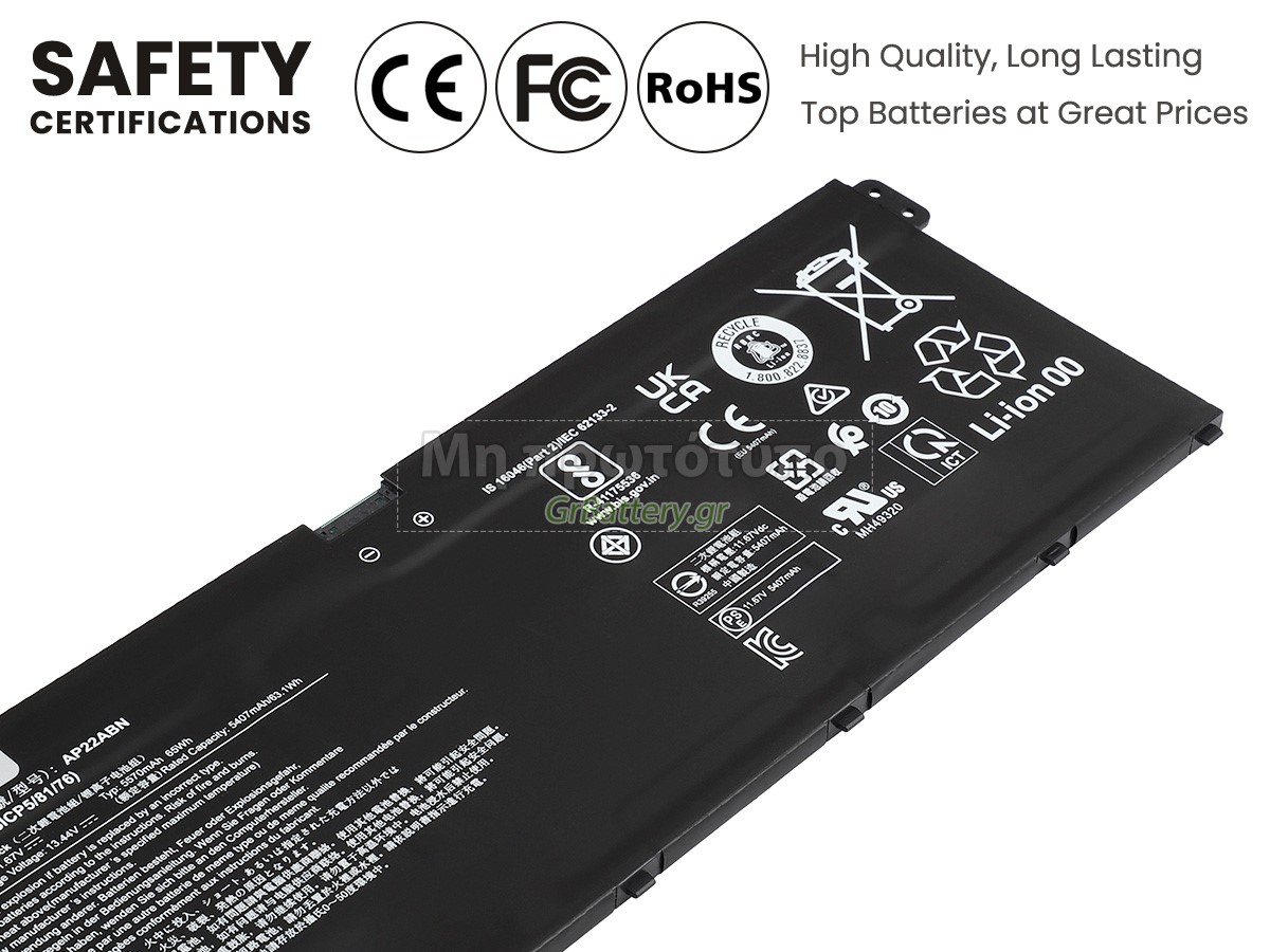 Δεν συνιστάται η αφαίρεση της μπαταρίας, έτσι ώστε να αποφευχθεί η συνέχιση της λειτουργίας της τροφοδοσίας εναλλασσόμενου ρεύματος σε περίπτωση ξαφνικής διακοπής, χωρίς απώλεια δεδομένων. Αν αφαιρεθεί, συνιστάται η περιτύλιξη της μπαταρίας Acer SWIFT GO SFG16-71 στην πλαστική μεμβράνη και η τοποθέτηση σε στεγνό και δροσερό μέρος, και να θυμάστε να χρησιμοποιείτε την μπαταρία τουλάχιστον μια φορά το μήνα και να την φορτίζετε για να αποφύγετε την απώλεια δράσης της μπαταρίας.