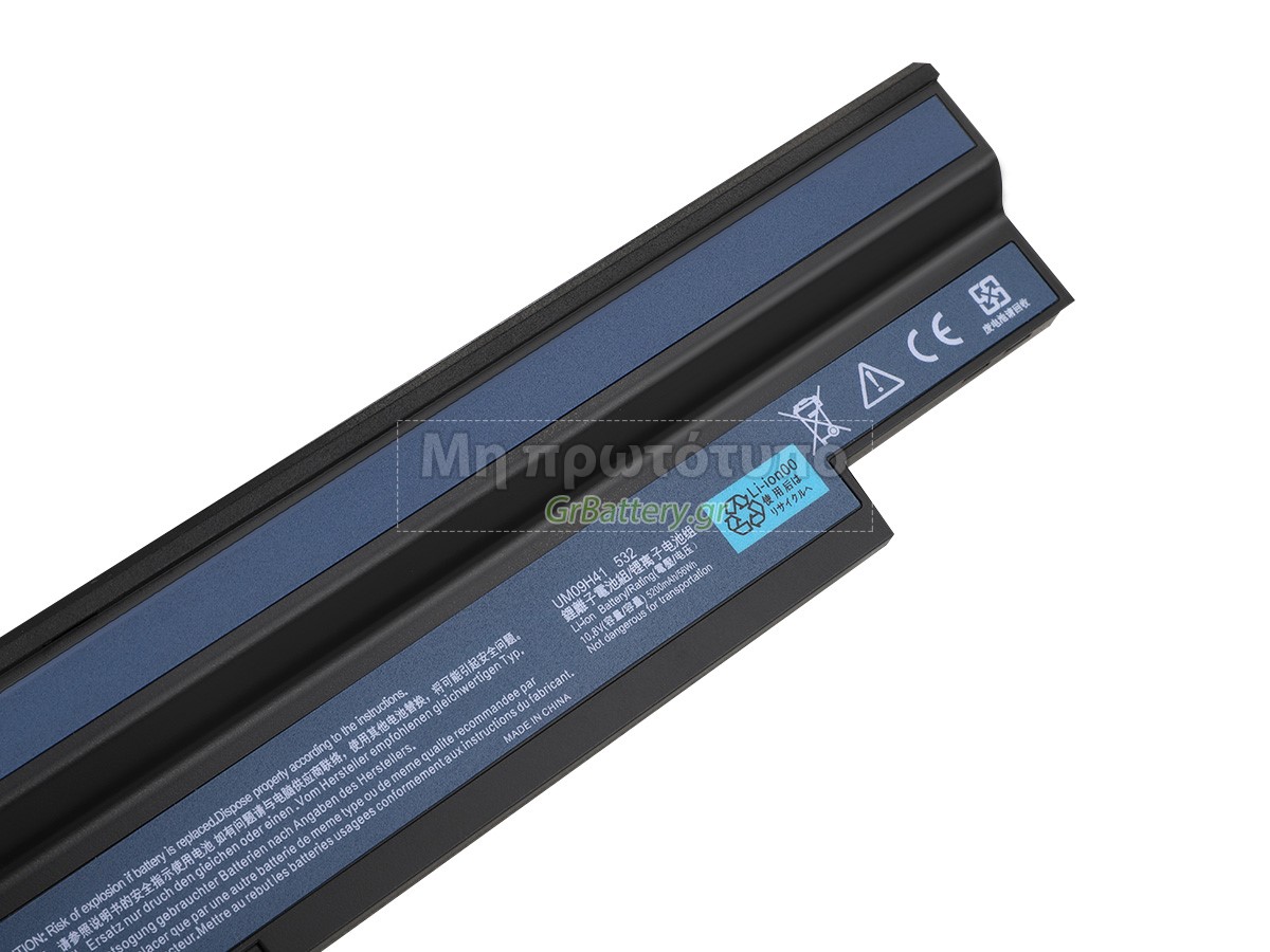 Δεν συνιστάται η αφαίρεση της μπαταρίας, έτσι ώστε να αποφευχθεί η συνέχιση της λειτουργίας της τροφοδοσίας εναλλασσόμενου ρεύματος σε περίπτωση ξαφνικής διακοπής, χωρίς απώλεια δεδομένων. Αν αφαιρεθεί, συνιστάται η περιτύλιξη της μπαταρίας Acer UM09H56 στην πλαστική μεμβράνη και η τοποθέτηση σε στεγνό και δροσερό μέρος, και να θυμάστε να χρησιμοποιείτε την μπαταρία τουλάχιστον μια φορά το μήνα και να την φορτίζετε για να αποφύγετε την απώλεια δράσης της μπαταρίας.