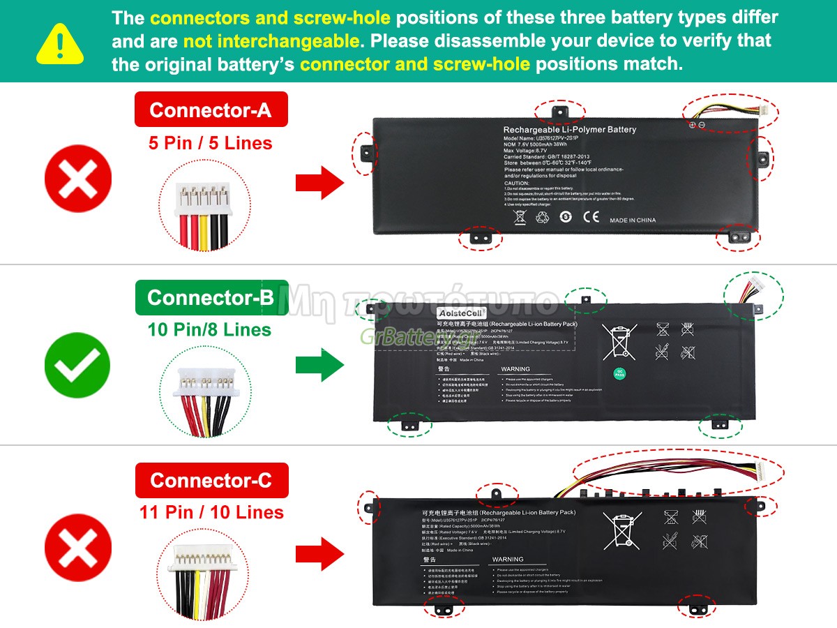 Εάν υπάρχουν ερωτήσεις σχετικά με την μπαταρία που αγοράσατε από εμάς, επικοινωνήστε πρώτα με την υπηρεσία εξυπηρέτησης πελατών μας. Θα βρούμε λύσεις για εσάς. Εάν απαιτείται επιστροφή, θα δημιουργήσουμε έναν αριθμό RMA (εξουσιοδότηση επιστροφής) για εσάς. Μόλις τα αποτελέσματα των δοκιμών δείξουν ότι η επιστρεφόμενη μπαταρία είναι ελαττωματική, θα αναλάβουμε το κόστος της αποστολής της μπαταρίας. (αν επιστρέψετε χωρίς τον αριθμό RMA, δεν θα επεξεργαστούμε την επιστρεφόμενη μπαταρία.)