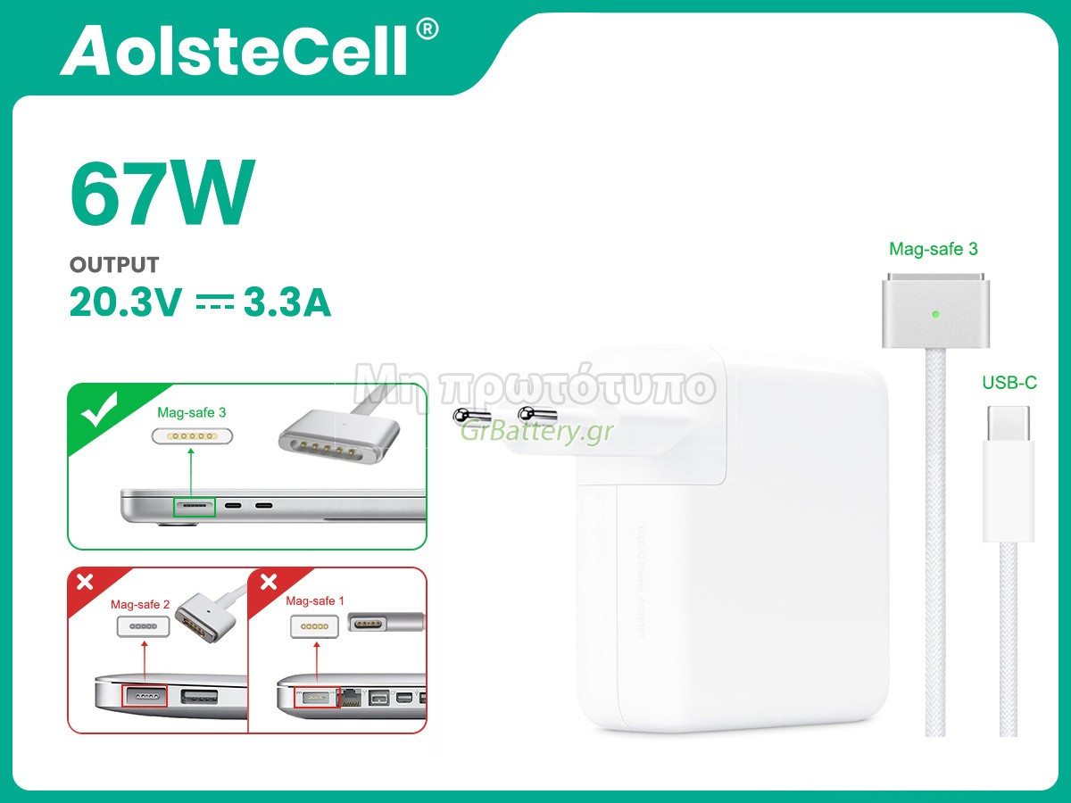 • αντάπτορας για Apple 67W 20.3V 3.3A USBC to MagSafe 3