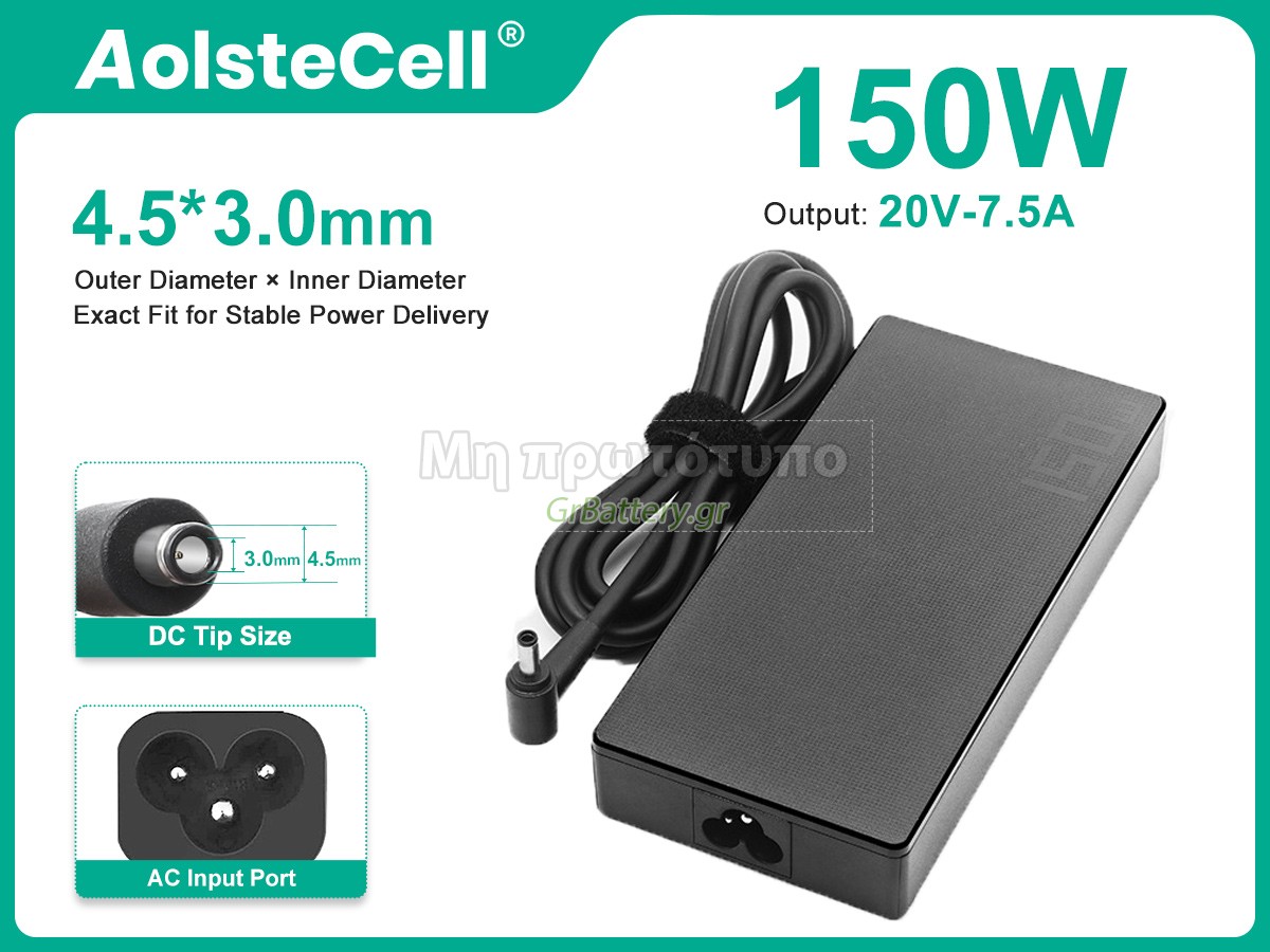 Υψηλής Απόδοσης Αντάπτορας για Asus 20V 7.5A 150W 4.5*3.0MM