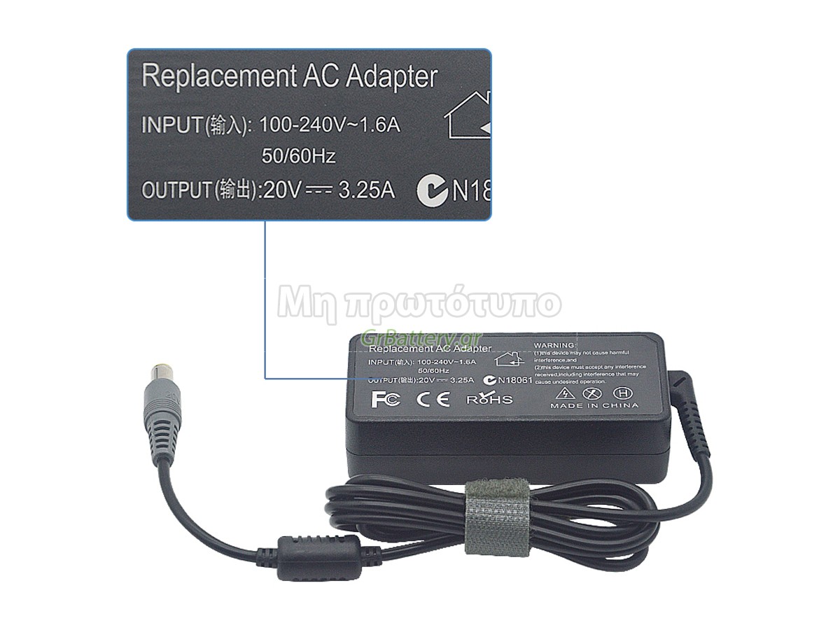 • αντάπτορας για Lenovo 20V 3.25A 65W 8.0*5.5MM