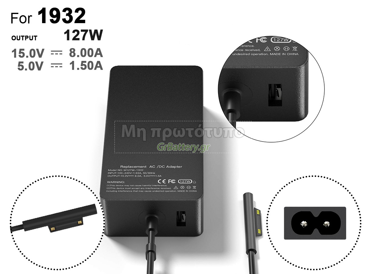 • αντάπτορας για Microsoft 15V 8A 127W Surface Pro Charger