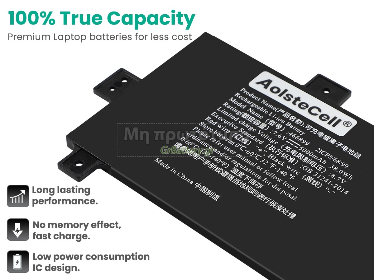 Δεν συνιστάται η αφαίρεση της μπαταρίας, έτσι ώστε να αποφευχθεί η συνέχιση της λειτουργίας της τροφοδοσίας εναλλασσόμενου ρεύματος σε περίπτωση ξαφνικής διακοπής, χωρίς απώλεια δεδομένων. Αν αφαιρεθεί, συνιστάται η περιτύλιξη της μπαταρίας AolsteCell 466899 στην πλαστική μεμβράνη και η τοποθέτηση σε στεγνό και δροσερό μέρος, και να θυμάστε να χρησιμοποιείτε την μπαταρία τουλάχιστον μια φορά το μήνα και να την φορτίζετε για να αποφύγετε την απώλεια δράσης της μπαταρίας.