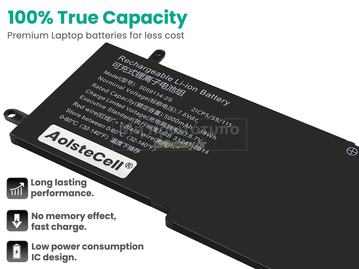 Δεν συνιστάται η αφαίρεση της μπαταρίας, έτσι ώστε να αποφευχθεί η συνέχιση της λειτουργίας της τροφοδοσίας εναλλασσόμενου ρεύματος σε περίπτωση ξαφνικής διακοπής, χωρίς απώλεια δεδομένων. Αν αφαιρεθεί, συνιστάται η περιτύλιξη της μπαταρίας AolsteCell 5059114-2S στην πλαστική μεμβράνη και η τοποθέτηση σε στεγνό και δροσερό μέρος, και να θυμάστε να χρησιμοποιείτε την μπαταρία τουλάχιστον μια φορά το μήνα και να την φορτίζετε για να αποφύγετε την απώλεια δράσης της μπαταρίας.