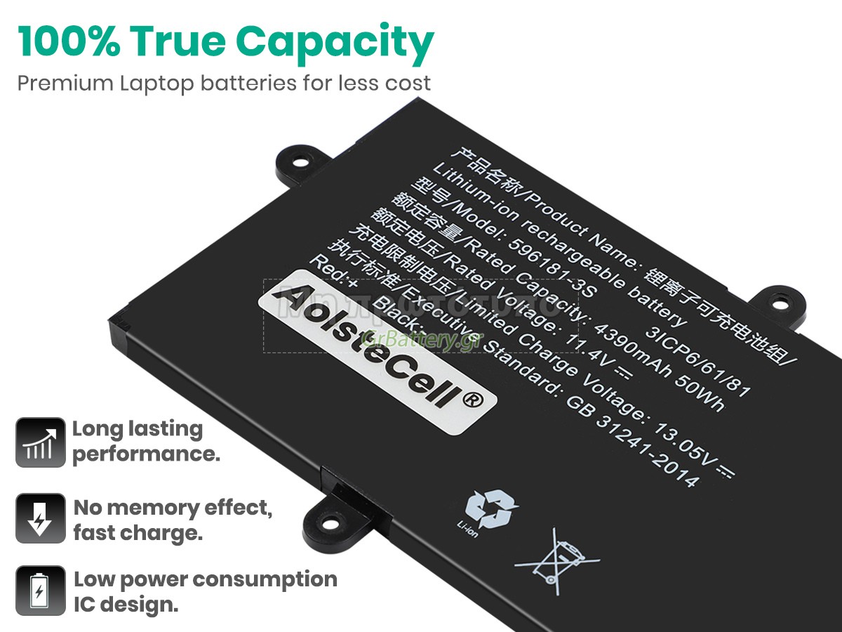 Δεν συνιστάται η αφαίρεση της μπαταρίας, έτσι ώστε να αποφευχθεί η συνέχιση της λειτουργίας της τροφοδοσίας εναλλασσόμενου ρεύματος σε περίπτωση ξαφνικής διακοπής, χωρίς απώλεια δεδομένων. Αν αφαιρεθεί, συνιστάται η περιτύλιξη της μπαταρίας AolsteCell 596181-3S στην πλαστική μεμβράνη και η τοποθέτηση σε στεγνό και δροσερό μέρος, και να θυμάστε να χρησιμοποιείτε την μπαταρία τουλάχιστον μια φορά το μήνα και να την φορτίζετε για να αποφύγετε την απώλεια δράσης της μπαταρίας.