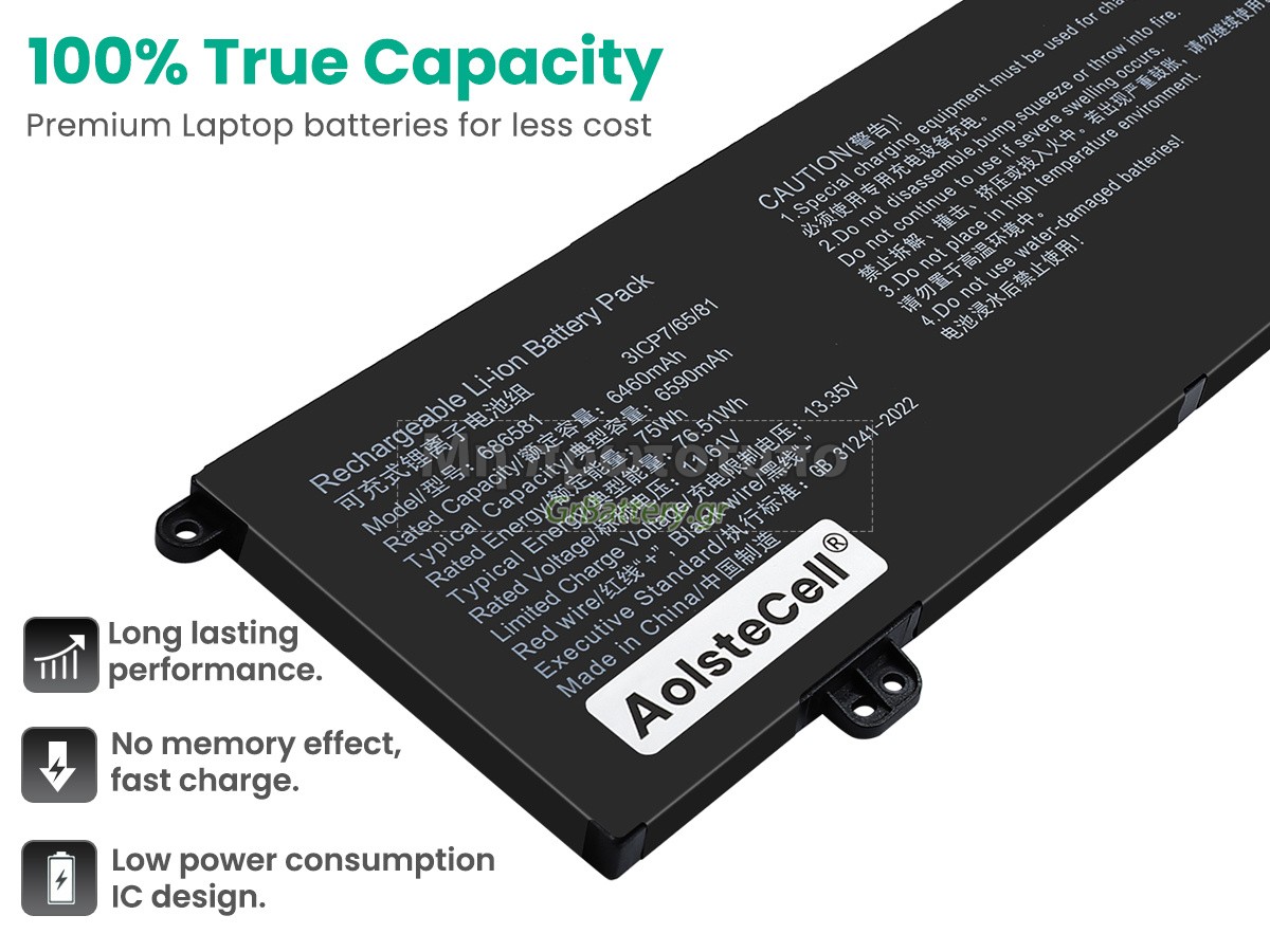 Δεν συνιστάται η αφαίρεση της μπαταρίας, έτσι ώστε να αποφευχθεί η συνέχιση της λειτουργίας της τροφοδοσίας εναλλασσόμενου ρεύματος σε περίπτωση ξαφνικής διακοπής, χωρίς απώλεια δεδομένων. Αν αφαιρεθεί, συνιστάται η περιτύλιξη της μπαταρίας AolsteCell 686581 στην πλαστική μεμβράνη και η τοποθέτηση σε στεγνό και δροσερό μέρος, και να θυμάστε να χρησιμοποιείτε την μπαταρία τουλάχιστον μια φορά το μήνα και να την φορτίζετε για να αποφύγετε την απώλεια δράσης της μπαταρίας.