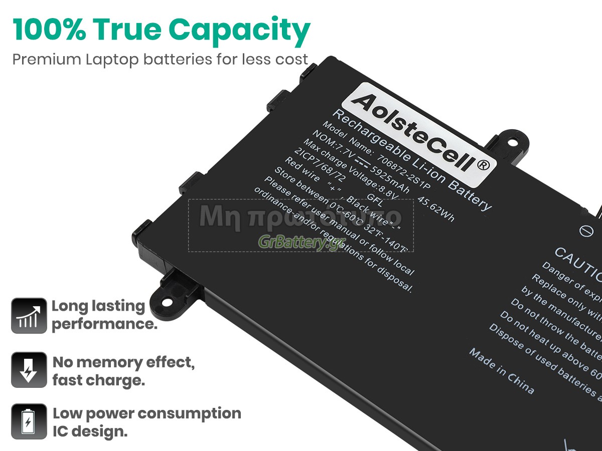 Δεν συνιστάται η αφαίρεση της μπαταρίας, έτσι ώστε να αποφευχθεί η συνέχιση της λειτουργίας της τροφοδοσίας εναλλασσόμενου ρεύματος σε περίπτωση ξαφνικής διακοπής, χωρίς απώλεια δεδομένων. Αν αφαιρεθεί, συνιστάται η περιτύλιξη της μπαταρίας AolsteCell 706872-2S1P στην πλαστική μεμβράνη και η τοποθέτηση σε στεγνό και δροσερό μέρος, και να θυμάστε να χρησιμοποιείτε την μπαταρία τουλάχιστον μια φορά το μήνα και να την φορτίζετε για να αποφύγετε την απώλεια δράσης της μπαταρίας.