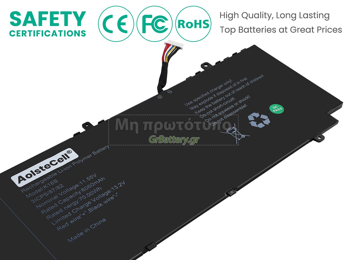 Η εντελώς νέα μας εφεδρική μπαταρία AolsteCell K16S αποτελείται από τα καλύτερα στοιχεία και εξαρτήματα. Οι μπαταρίες AolsteCell K16S που παρέχονται στο grbattery.gr έχουν περάσει δοκιμές UN38.3, RCM, CE, UL, ROHS, ISO9001/ISO9002 και άλλες διεθνείς πιστοποιήσεις. Προκειμένου να ελαχιστοποιηθούν οι κίνδυνοι ασφαλείας και να διασφαλιστεί η καλή εμπειρία του χρήστη, η μπαταρία φορητού υπολογιστή AolsteCell K16S χρησιμοποιεί μια ποικιλία μέτρων προστασίας. Για παράδειγμα, προστασία θερμοκρασίας, προστασία κυκλώματος, προστασία υπερφόρτισης, προστασία υλικού, όριο ρεύματος εξόδου και άλλα μέτρα προστασίας.