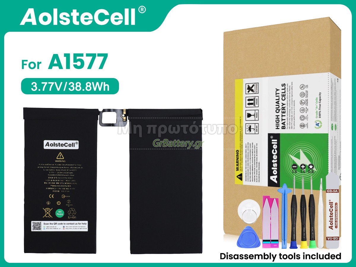 Tip: please make sure you can replace the battery yourself before placing an order. This battery is only fit for iPad A1584 EMC 2838, A1652 EMC 2827. Η εντελώς νέα μας εφεδρική μπαταρία Apple A1577 αποτελείται από τα καλύτερα στοιχεία και εξαρτήματα. Οι μπαταρίες Apple A1577 που παρέχονται στο grbattery.gr έχουν περάσει δοκιμές UN38.3, RCM, CE, UL, ROHS, ISO9001/ISO9002 και άλλες διεθνείς πιστοποιήσεις. Προκειμένου να ελαχιστοποιηθούν οι κίνδυνοι ασφαλείας και να διασφαλιστεί η καλή εμπειρία του χρήστη, η μπαταρία φορητού υπολογιστή Apple A1577 χρησιμοποιεί μια ποικιλία μέτρων προστασίας. Για παράδειγμα, προστασία θερμοκρασίας, προστασία κυκλώματος, προστασία υπερφόρτισης, προστασία υλικού, όριο ρεύματος εξόδου και άλλα μέτρα προστασίας.
