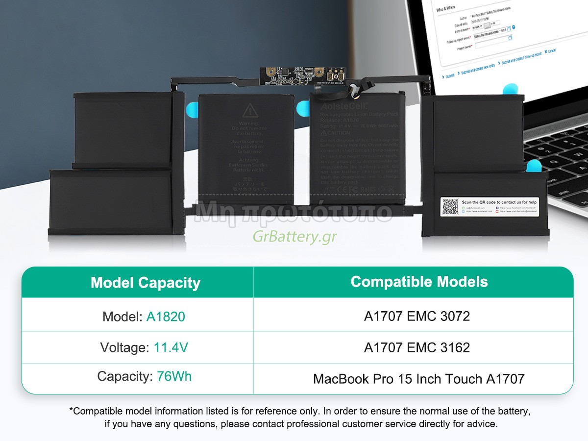 Η εντελώς νέα μας εφεδρική μπαταρία Apple A1820 αποτελείται από τα καλύτερα στοιχεία και εξαρτήματα. Οι μπαταρίες Apple A1820 που παρέχονται στο grbattery.gr έχουν περάσει δοκιμές UN38.3, RCM, CE, UL, ROHS, ISO9001/ISO9002 και άλλες διεθνείς πιστοποιήσεις. Προκειμένου να ελαχιστοποιηθούν οι κίνδυνοι ασφαλείας και να διασφαλιστεί η καλή εμπειρία του χρήστη, η μπαταρία φορητού υπολογιστή Apple A1820 χρησιμοποιεί μια ποικιλία μέτρων προστασίας. Για παράδειγμα, προστασία θερμοκρασίας, προστασία κυκλώματος, προστασία υπερφόρτισης, προστασία υλικού, όριο ρεύματος εξόδου και άλλα μέτρα προστασίας.