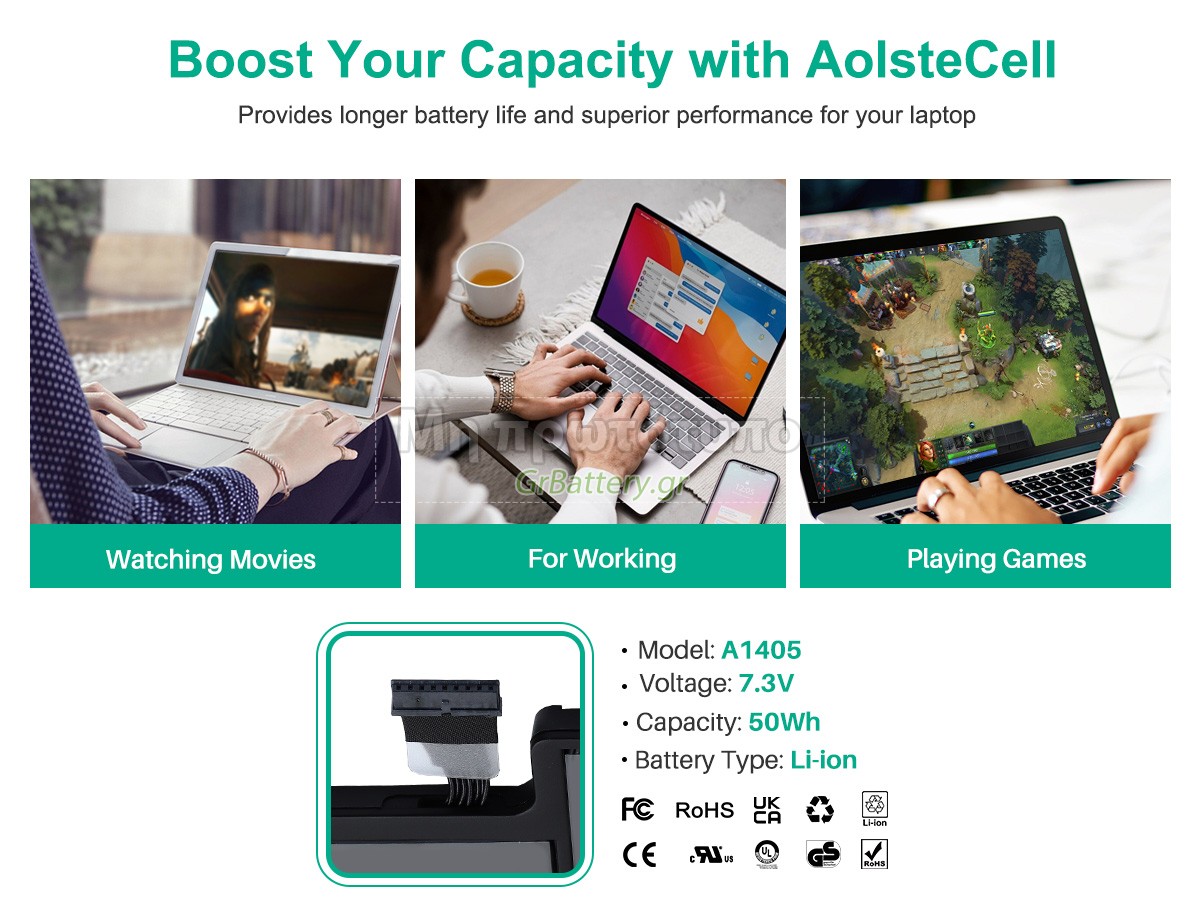 Η εντελώς νέα μας εφεδρική μπαταρία Apple MacBook Air 13" MC504TA/A αποτελείται από τα καλύτερα στοιχεία και εξαρτήματα. Οι μπαταρίες Apple MacBook Air 13" MC504TA/A που παρέχονται στο grbattery.gr έχουν περάσει δοκιμές UN38.3, RCM, CE, UL, ROHS, ISO9001/ISO9002 και άλλες διεθνείς πιστοποιήσεις. Προκειμένου να ελαχιστοποιηθούν οι κίνδυνοι ασφαλείας και να διασφαλιστεί η καλή εμπειρία του χρήστη, η μπαταρία φορητού υπολογιστή Apple MacBook Air 13" MC504TA/A χρησιμοποιεί μια ποικιλία μέτρων προστασίας. Για παράδειγμα, προστασία θερμοκρασίας, προστασία κυκλώματος, προστασία υπερφόρτισης, προστασία υλικού, όριο ρεύματος εξόδου και άλλα μέτρα προστασίας.
