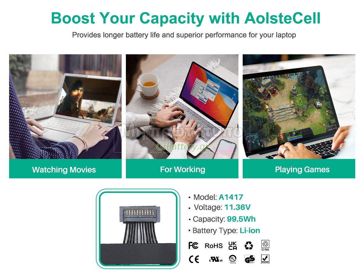 Δεν συνιστάται η αφαίρεση της μπαταρίας, έτσι ώστε να αποφευχθεί η συνέχιση της λειτουργίας της τροφοδοσίας εναλλασσόμενου ρεύματος σε περίπτωση ξαφνικής διακοπής, χωρίς απώλεια δεδομένων. Αν αφαιρεθεί, συνιστάται η περιτύλιξη της μπαταρίας Apple MacBook Pro Core I7 2.7GHZ 15.5 inch Retina A1398(EMC 2673) στην πλαστική μεμβράνη και η τοποθέτηση σε στεγνό και δροσερό μέρος, και να θυμάστε να χρησιμοποιείτε την μπαταρία τουλάχιστον μια φορά το μήνα και να την φορτίζετε για να αποφύγετε την απώλεια δράσης της μπαταρίας.