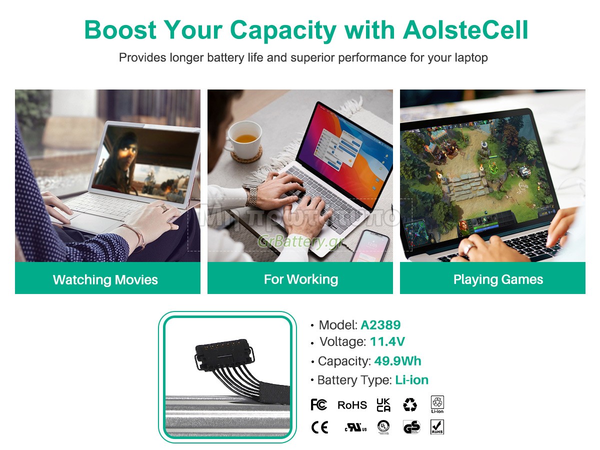 Η εντελώς νέα μας εφεδρική μπαταρία Apple MGN73LL/A αποτελείται από τα καλύτερα στοιχεία και εξαρτήματα. Οι μπαταρίες Apple MGN73LL/A που παρέχονται στο grbattery.gr έχουν περάσει δοκιμές UN38.3, RCM, CE, UL, ROHS, ISO9001/ISO9002 και άλλες διεθνείς πιστοποιήσεις. Προκειμένου να ελαχιστοποιηθούν οι κίνδυνοι ασφαλείας και να διασφαλιστεί η καλή εμπειρία του χρήστη, η μπαταρία φορητού υπολογιστή Apple MGN73LL/A χρησιμοποιεί μια ποικιλία μέτρων προστασίας. Για παράδειγμα, προστασία θερμοκρασίας, προστασία κυκλώματος, προστασία υπερφόρτισης, προστασία υλικού, όριο ρεύματος εξόδου και άλλα μέτρα προστασίας.