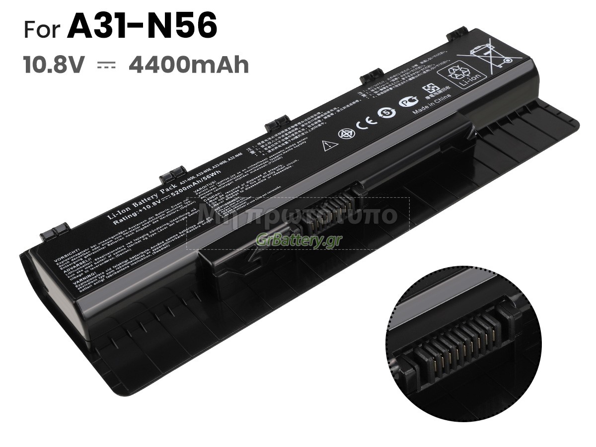Δεν συνιστάται η αφαίρεση της μπαταρίας, έτσι ώστε να αποφευχθεί η συνέχιση της λειτουργίας της τροφοδοσίας εναλλασσόμενου ρεύματος σε περίπτωση ξαφνικής διακοπής, χωρίς απώλεια δεδομένων. Αν αφαιρεθεί, συνιστάται η περιτύλιξη της μπαταρίας Asus A31-N56 στην πλαστική μεμβράνη και η τοποθέτηση σε στεγνό και δροσερό μέρος, και να θυμάστε να χρησιμοποιείτε την μπαταρία τουλάχιστον μια φορά το μήνα και να την φορτίζετε για να αποφύγετε την απώλεια δράσης της μπαταρίας.