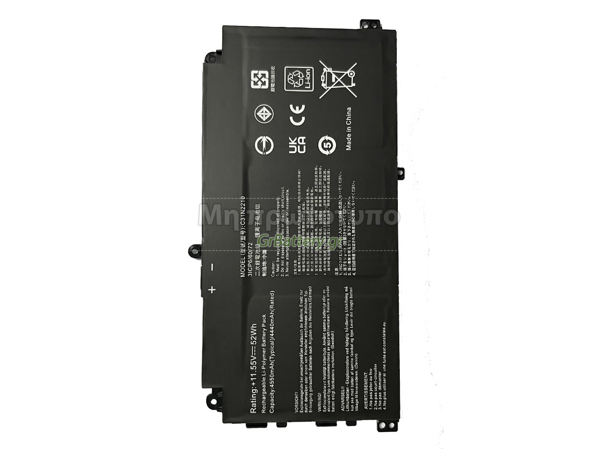 Δεν συνιστάται η αφαίρεση της μπαταρίας, έτσι ώστε να αποφευχθεί η συνέχιση της λειτουργίας της τροφοδοσίας εναλλασσόμενου ρεύματος σε περίπτωση ξαφνικής διακοπής, χωρίς απώλεια δεδομένων. Αν αφαιρεθεί, συνιστάται η περιτύλιξη της μπαταρίας Asus B2502F στην πλαστική μεμβράνη και η τοποθέτηση σε στεγνό και δροσερό μέρος, και να θυμάστε να χρησιμοποιείτε την μπαταρία τουλάχιστον μια φορά το μήνα και να την φορτίζετε για να αποφύγετε την απώλεια δράσης της μπαταρίας.