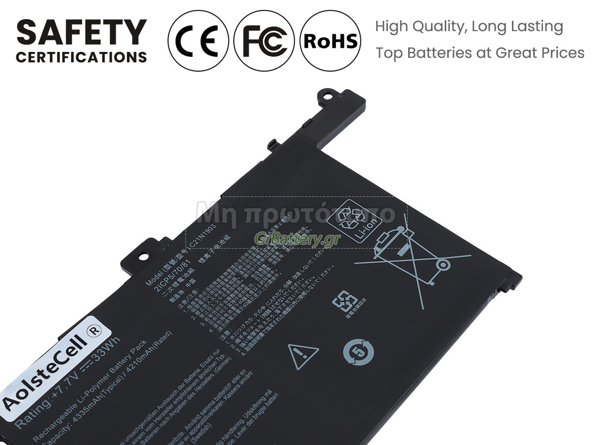 Η εντελώς νέα μας εφεδρική μπαταρία Asus B3302FEA αποτελείται από τα καλύτερα στοιχεία και εξαρτήματα. Οι μπαταρίες Asus B3302FEA που παρέχονται στο grbattery.gr έχουν περάσει δοκιμές UN38.3, RCM, CE, UL, ROHS, ISO9001/ISO9002 και άλλες διεθνείς πιστοποιήσεις. Προκειμένου να ελαχιστοποιηθούν οι κίνδυνοι ασφαλείας και να διασφαλιστεί η καλή εμπειρία του χρήστη, η μπαταρία φορητού υπολογιστή Asus B3302FEA χρησιμοποιεί μια ποικιλία μέτρων προστασίας. Για παράδειγμα, προστασία θερμοκρασίας, προστασία κυκλώματος, προστασία υπερφόρτισης, προστασία υλικού, όριο ρεύματος εξόδου και άλλα μέτρα προστασίας.