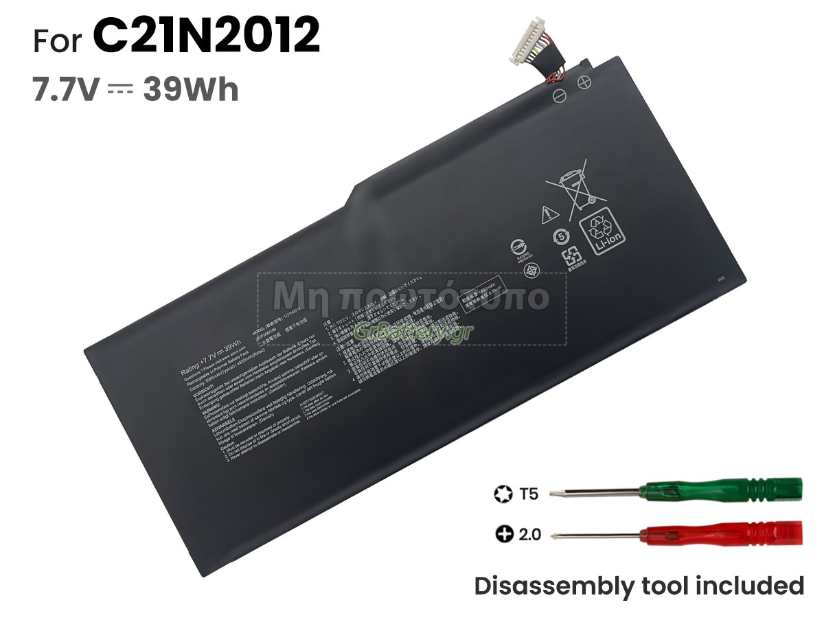 Δεν συνιστάται η αφαίρεση της μπαταρίας, έτσι ώστε να αποφευχθεί η συνέχιση της λειτουργίας της τροφοδοσίας εναλλασσόμενου ρεύματος σε περίπτωση ξαφνικής διακοπής, χωρίς απώλεια δεδομένων. Αν αφαιρεθεί, συνιστάται η περιτύλιξη της μπαταρίας Asus C21N2012 στην πλαστική μεμβράνη και η τοποθέτηση σε στεγνό και δροσερό μέρος, και να θυμάστε να χρησιμοποιείτε την μπαταρία τουλάχιστον μια φορά το μήνα και να την φορτίζετε για να αποφύγετε την απώλεια δράσης της μπαταρίας.