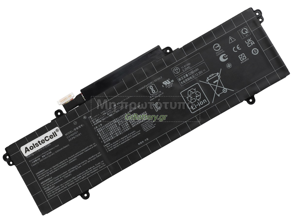 Δεν συνιστάται η αφαίρεση της μπαταρίας, έτσι ώστε να αποφευχθεί η συνέχιση της λειτουργίας της τροφοδοσίας εναλλασσόμενου ρεύματος σε περίπτωση ξαφνικής διακοπής, χωρίς απώλεια δεδομένων. Αν αφαιρεθεί, συνιστάται η περιτύλιξη της μπαταρίας Asus C31N2021 στην πλαστική μεμβράνη και η τοποθέτηση σε στεγνό και δροσερό μέρος, και να θυμάστε να χρησιμοποιείτε την μπαταρία τουλάχιστον μια φορά το μήνα και να την φορτίζετε για να αποφύγετε την απώλεια δράσης της μπαταρίας.