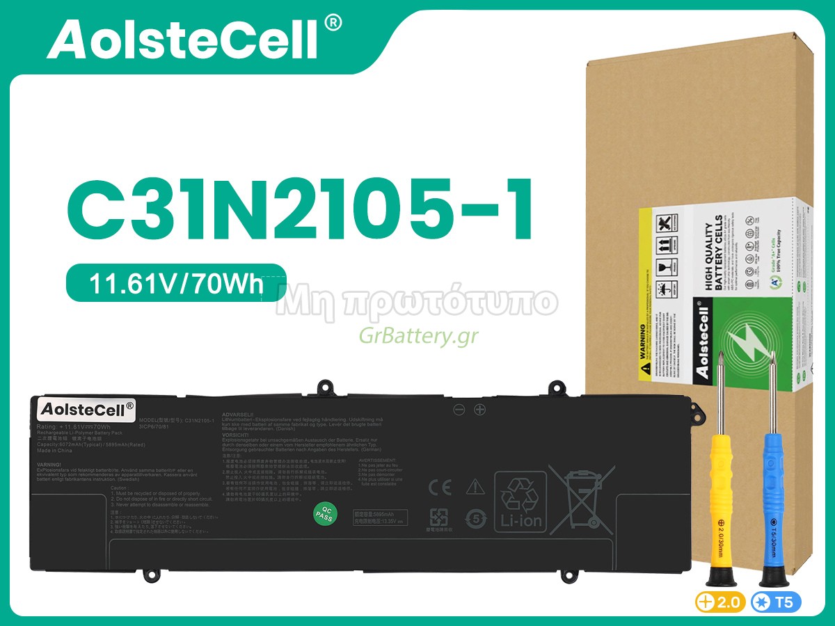 Δεν συνιστάται η αφαίρεση της μπαταρίας, έτσι ώστε να αποφευχθεί η συνέχιση της λειτουργίας της τροφοδοσίας εναλλασσόμενου ρεύματος σε περίπτωση ξαφνικής διακοπής, χωρίς απώλεια δεδομένων. Αν αφαιρεθεί, συνιστάται η περιτύλιξη της μπαταρίας Asus C31N2105-1 στην πλαστική μεμβράνη και η τοποθέτηση σε στεγνό και δροσερό μέρος, και να θυμάστε να χρησιμοποιείτε την μπαταρία τουλάχιστον μια φορά το μήνα και να την φορτίζετε για να αποφύγετε την απώλεια δράσης της μπαταρίας.
