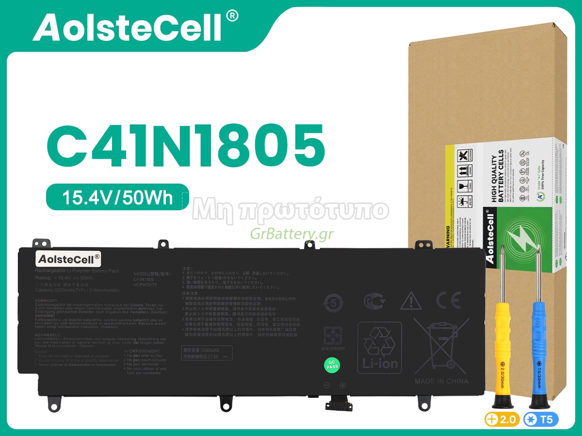 Η αντικατεστημένη μπαταρία του Asus C41N1805 είναι εντελώς νέα. Ποτέ δεν θα πουλήσουμε χρησιμοποιημένες μπαταρίες ή ανακαινισμένες μπαταρίες. Οι μπαταρίες μας είναι κατασκευασμένες από τα καλύτερα στοιχεία και εξαρτήματα
