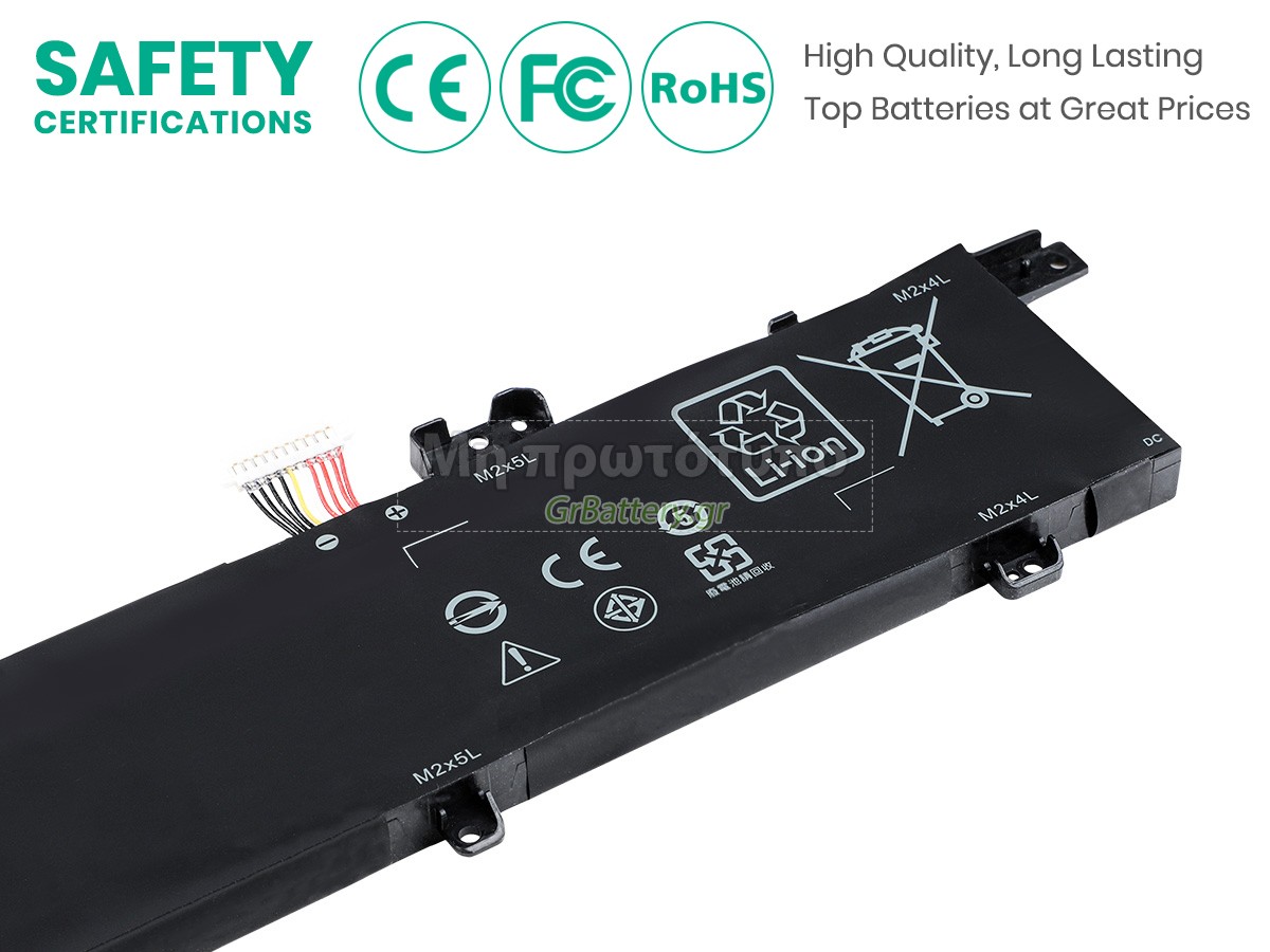 Δεν συνιστάται η αφαίρεση της μπαταρίας, έτσι ώστε να αποφευχθεί η συνέχιση της λειτουργίας της τροφοδοσίας εναλλασσόμενου ρεύματος σε περίπτωση ξαφνικής διακοπής, χωρίς απώλεια δεδομένων. Αν αφαιρεθεί, συνιστάται η περιτύλιξη της μπαταρίας Asus C42N1846 στην πλαστική μεμβράνη και η τοποθέτηση σε στεγνό και δροσερό μέρος, και να θυμάστε να χρησιμοποιείτε την μπαταρία τουλάχιστον μια φορά το μήνα και να την φορτίζετε για να αποφύγετε την απώλεια δράσης της μπαταρίας.