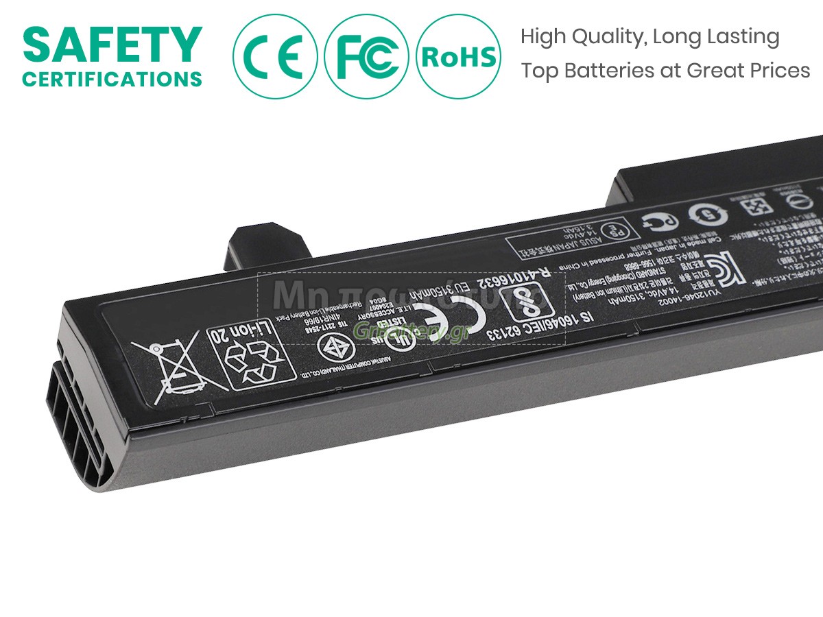 Η εντελώς νέα μας εφεδρική μπαταρία Asus G552VX αποτελείται από τα καλύτερα στοιχεία και εξαρτήματα. Οι μπαταρίες Asus G552VX που παρέχονται στο grbattery.gr έχουν περάσει δοκιμές UN38.3, RCM, CE, UL, ROHS, ISO9001/ISO9002 και άλλες διεθνείς πιστοποιήσεις. Προκειμένου να ελαχιστοποιηθούν οι κίνδυνοι ασφαλείας και να διασφαλιστεί η καλή εμπειρία του χρήστη, η μπαταρία φορητού υπολογιστή Asus G552VX χρησιμοποιεί μια ποικιλία μέτρων προστασίας. Για παράδειγμα, προστασία θερμοκρασίας, προστασία κυκλώματος, προστασία υπερφόρτισης, προστασία υλικού, όριο ρεύματος εξόδου και άλλα μέτρα προστασίας.