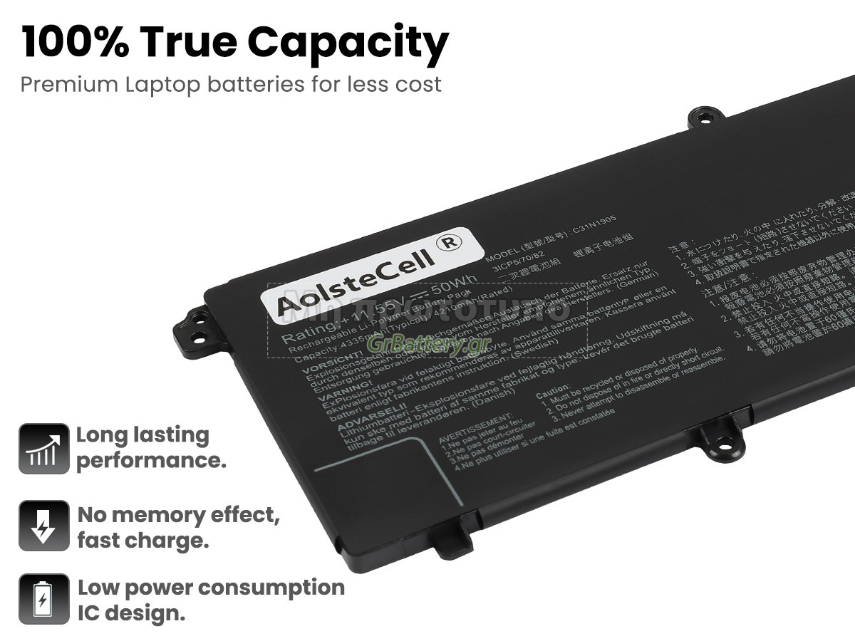 This battery only fit for the battery model: C31N1905. Please check your old battery before placing an order, ensure buy one right battery for your laptop. Η εντελώς νέα μας εφεδρική μπαταρία Asus ZenBook X3500PA αποτελείται από τα καλύτερα στοιχεία και εξαρτήματα. Οι μπαταρίες Asus ZenBook X3500PA που παρέχονται στο grbattery.gr έχουν περάσει δοκιμές UN38.3, RCM, CE, UL, ROHS, ISO9001/ISO9002 και άλλες διεθνείς πιστοποιήσεις. Προκειμένου να ελαχιστοποιηθούν οι κίνδυνοι ασφαλείας και να διασφαλιστεί η καλή εμπειρία του χρήστη, η μπαταρία φορητού υπολογιστή Asus ZenBook X3500PA χρησιμοποιεί μια ποικιλία μέτρων προστασίας. Για παράδειγμα, προστασία θερμοκρασίας, προστασία κυκλώματος, προστασία υπερφόρτισης, προστασία υλικού, όριο ρεύματος εξόδου και άλλα μέτρα προστασίας.