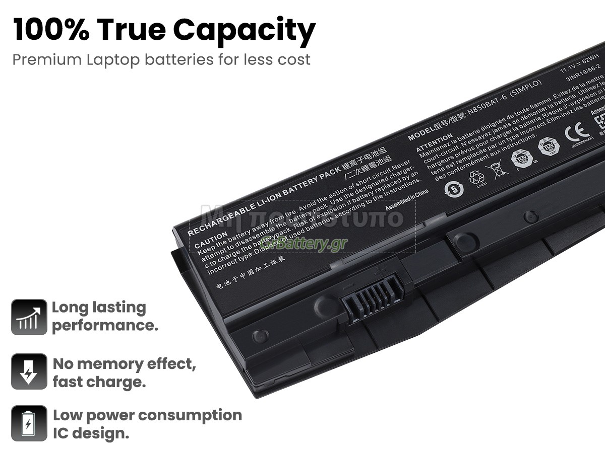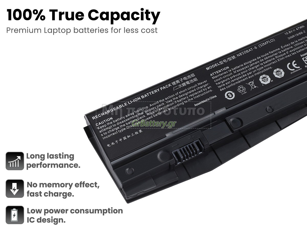 Δεν συνιστάται η αφαίρεση της μπαταρίας, έτσι ώστε να αποφευχθεί η συνέχιση της λειτουργίας της τροφοδοσίας εναλλασσόμενου ρεύματος σε περίπτωση ξαφνικής διακοπής, χωρίς απώλεια δεδομένων. Αν αφαιρεθεί, συνιστάται η περιτύλιξη της μπαταρίας Clevo N870HK1 στην πλαστική μεμβράνη και η τοποθέτηση σε στεγνό και δροσερό μέρος, και να θυμάστε να χρησιμοποιείτε την μπαταρία τουλάχιστον μια φορά το μήνα και να την φορτίζετε για να αποφύγετε την απώλεια δράσης της μπαταρίας.