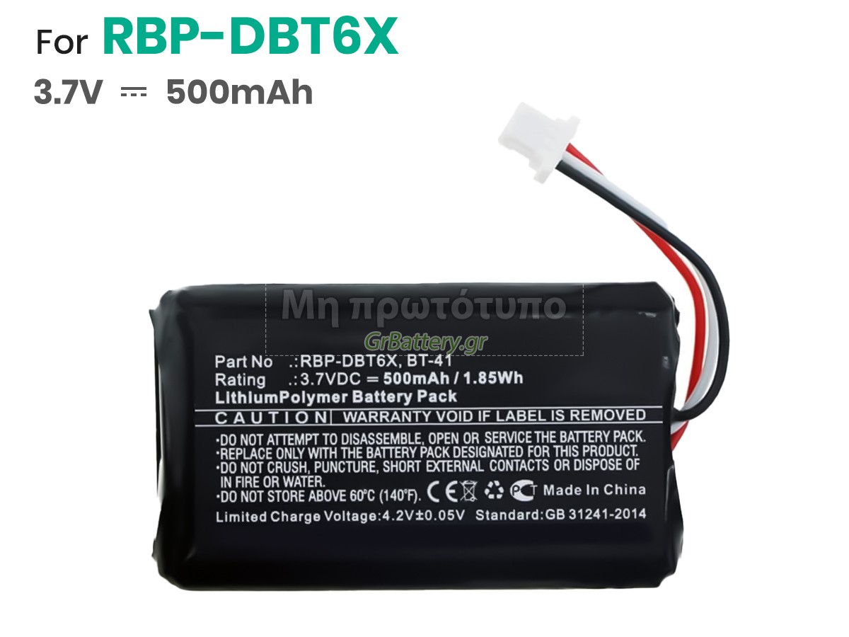 Δεν συνιστάται η αφαίρεση της μπαταρίας, έτσι ώστε να αποφευχθεί η συνέχιση της λειτουργίας της τροφοδοσίας εναλλασσόμενου ρεύματος σε περίπτωση ξαφνικής διακοπής, χωρίς απώλεια δεδομένων. Αν αφαιρεθεί, συνιστάται η περιτύλιξη της μπαταρίας Datalogic RBP-DBT6X στην πλαστική μεμβράνη και η τοποθέτηση σε στεγνό και δροσερό μέρος, και να θυμάστε να χρησιμοποιείτε την μπαταρία τουλάχιστον μια φορά το μήνα και να την φορτίζετε για να αποφύγετε την απώλεια δράσης της μπαταρίας.