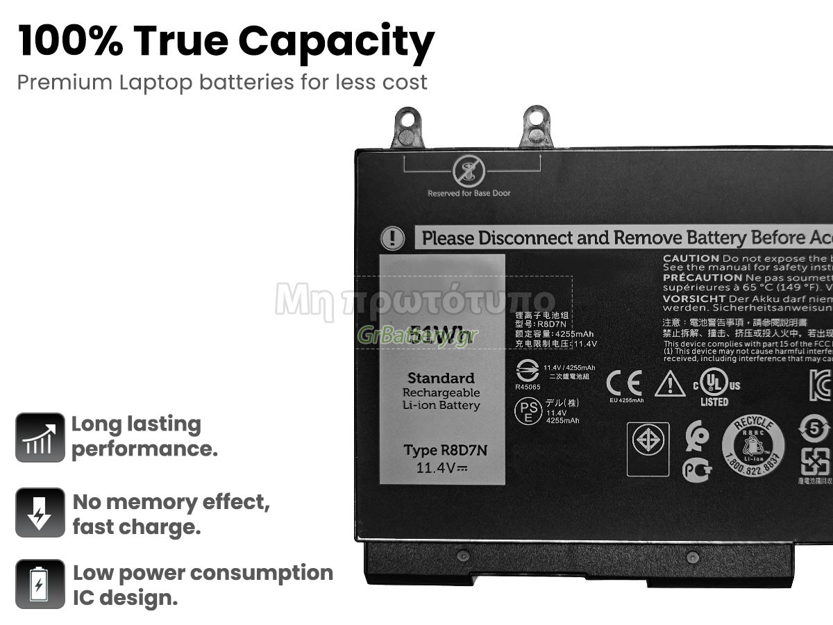 Δεν συνιστάται η αφαίρεση της μπαταρίας, έτσι ώστε να αποφευχθεί η συνέχιση της λειτουργίας της τροφοδοσίας εναλλασσόμενου ρεύματος σε περίπτωση ξαφνικής διακοπής, χωρίς απώλεια δεδομένων. Αν αφαιρεθεί, συνιστάται η περιτύλιξη της μπαταρίας Dell Latitude 5411 στην πλαστική μεμβράνη και η τοποθέτηση σε στεγνό και δροσερό μέρος, και να θυμάστε να χρησιμοποιείτε την μπαταρία τουλάχιστον μια φορά το μήνα και να την φορτίζετε για να αποφύγετε την απώλεια δράσης της μπαταρίας.