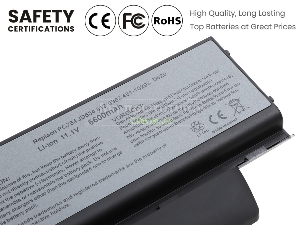 This is a high capacity battery, the back of this battery will extend out about 1 inch(bigger size). Η εντελώς νέα μας εφεδρική μπαταρία Dell RC126 αποτελείται από τα καλύτερα στοιχεία και εξαρτήματα. Οι μπαταρίες Dell RC126 που παρέχονται στο grbattery.gr έχουν περάσει δοκιμές UN38.3, RCM, CE, UL, ROHS, ISO9001/ISO9002 και άλλες διεθνείς πιστοποιήσεις. Προκειμένου να ελαχιστοποιηθούν οι κίνδυνοι ασφαλείας και να διασφαλιστεί η καλή εμπειρία του χρήστη, η μπαταρία φορητού υπολογιστή Dell RC126 χρησιμοποιεί μια ποικιλία μέτρων προστασίας. Για παράδειγμα, προστασία θερμοκρασίας, προστασία κυκλώματος, προστασία υπερφόρτισης, προστασία υλικού, όριο ρεύματος εξόδου και άλλα μέτρα προστασίας.