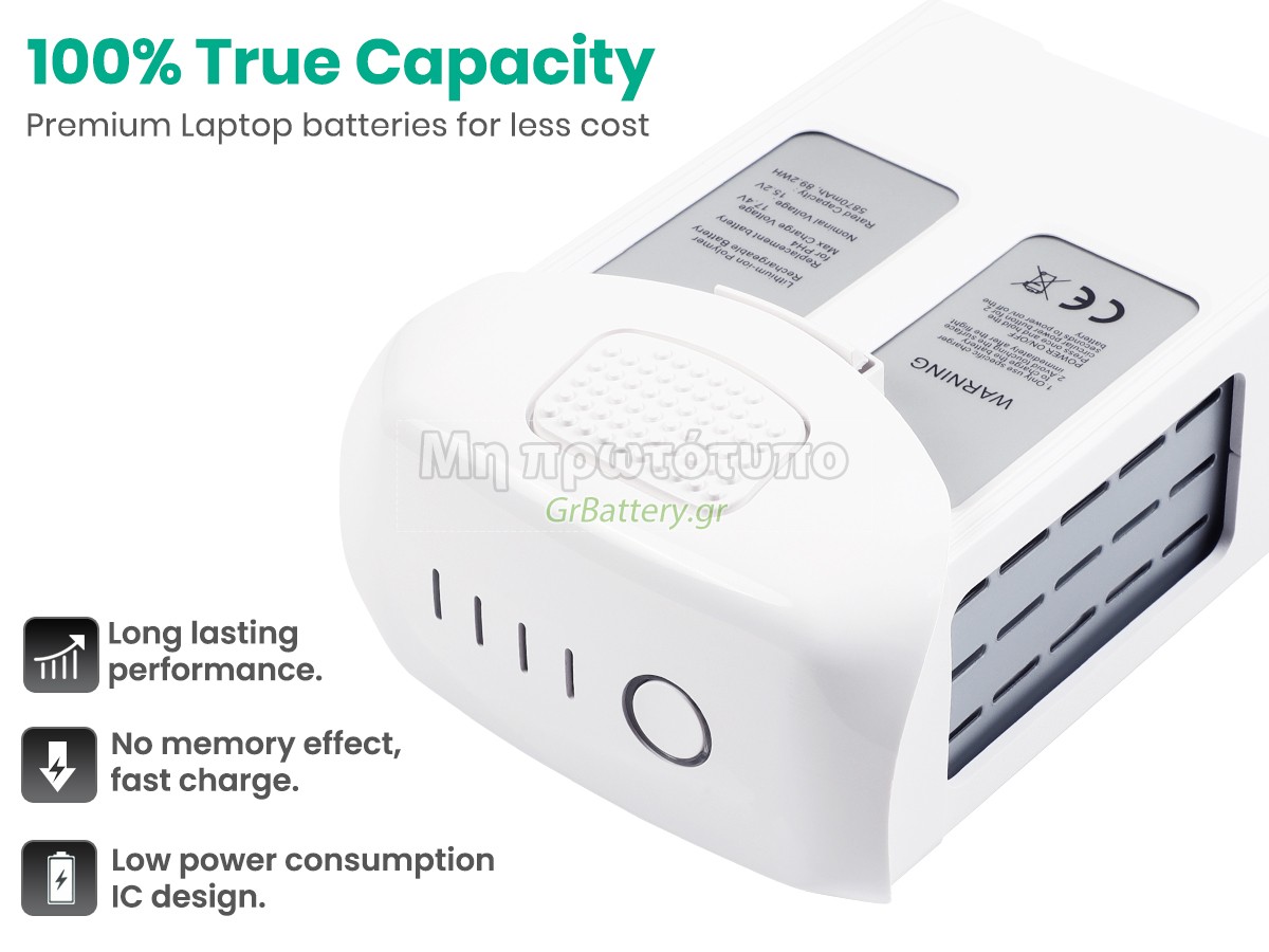 Δεν υπάρχει καμία διαφορά, εκτός από το ότι οι μπαταρίες μας δεν φέρουν ετικέτα. Όλες οι επαναφορτιζόμενες μπαταρίες που είναι διαθέσιμες στο xxx.com είναι εφεδρικές μπαταρίες του αρχικού κατασκευαστή. Χρησιμοποιούν τα ίδια έξυπνα τσιπ και στοιχεία όπως οι αυθεντικές, οπότε η απόδοση και η συμβατότητα της μπαταρίας DJI PHANTOM 4 PRO είναι παρόμοια ή και καλύτερη από την αυθεντικήεπαναφορτιζόμενη μπαταρία. Αυτό θα αφαιρέσει το τίμημα της μάρκας, διατηρώντας ταυτόχρονα την ποιότητα. Πολλοί καταναλωτές πιστεύουν ότι οι αυθεντικές μπαταρίες λειτουργούν καλύτερα. Στην πραγματικότητα, πολλές μάρκες μπαταριών για φορητούς υπολογιστές κατασκευάζονται επίσης από εξαρτήματα από τρίτους (όπως Samsung, LG, κ.λπ.). Ακριβώς όπως η CPU ενός δεν παράγεται από τηνίδιαεταιρεία υπολογιστών.