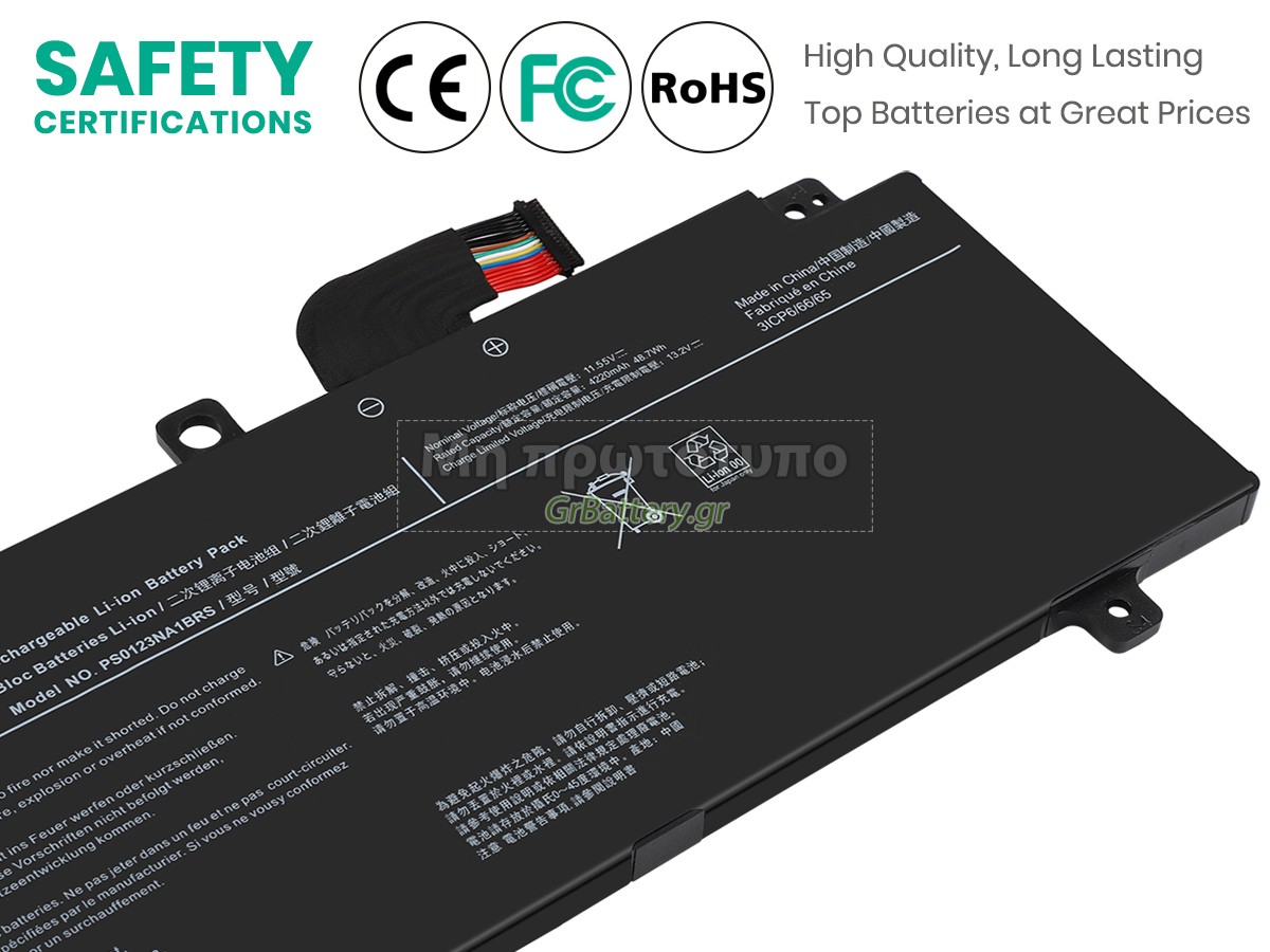 Δεν συνιστάται η αφαίρεση της μπαταρίας, έτσι ώστε να αποφευχθεί η συνέχιση της λειτουργίας της τροφοδοσίας εναλλασσόμενου ρεύματος σε περίπτωση ξαφνικής διακοπής, χωρίς απώλεια δεδομένων. Αν αφαιρεθεί, συνιστάται η περιτύλιξη της μπαταρίας Dynabook PS0123NA1BRS στην πλαστική μεμβράνη και η τοποθέτηση σε στεγνό και δροσερό μέρος, και να θυμάστε να χρησιμοποιείτε την μπαταρία τουλάχιστον μια φορά το μήνα και να την φορτίζετε για να αποφύγετε την απώλεια δράσης της μπαταρίας.