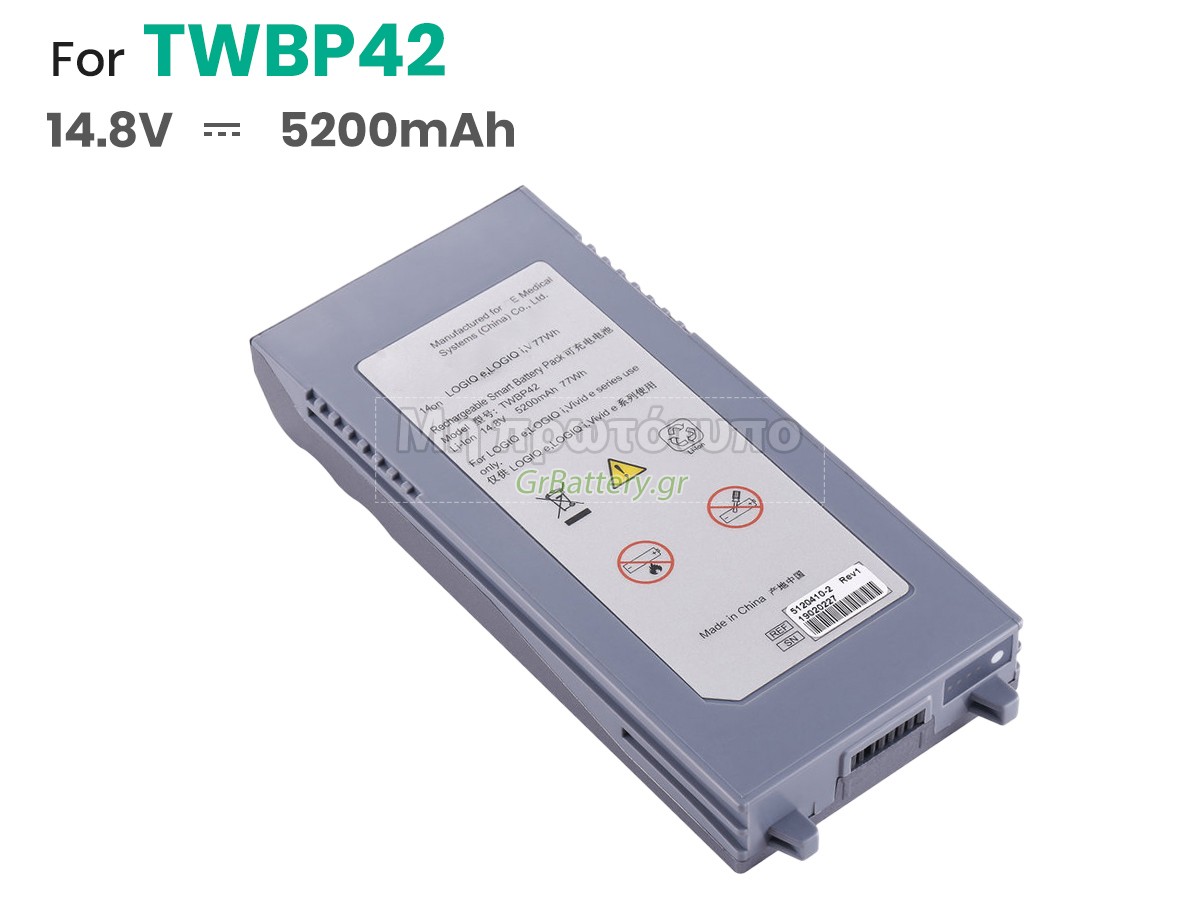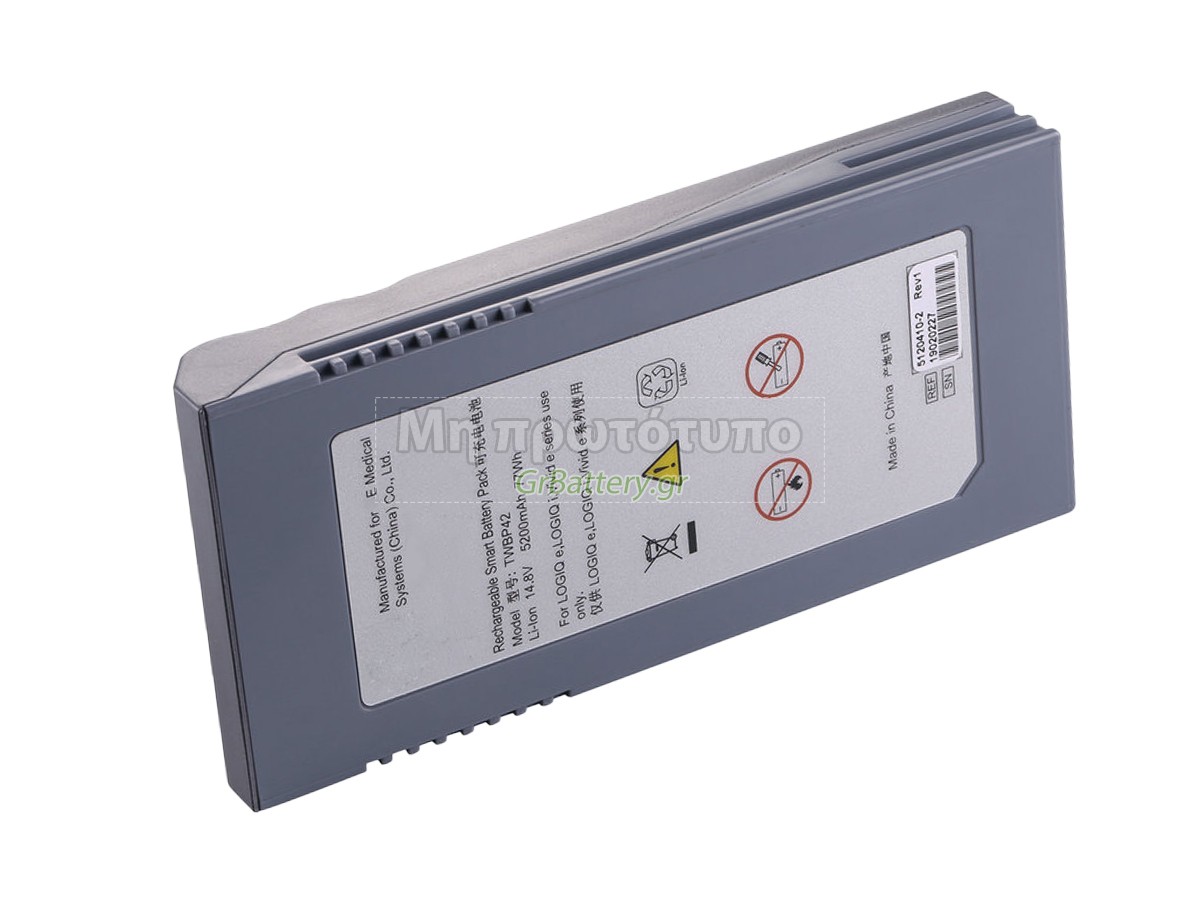Δεν συνιστάται η αφαίρεση της μπαταρίας, έτσι ώστε να αποφευχθεί η συνέχιση της λειτουργίας της τροφοδοσίας εναλλασσόμενου ρεύματος σε περίπτωση ξαφνικής διακοπής, χωρίς απώλεια δεδομένων. Αν αφαιρεθεί, συνιστάται η περιτύλιξη της μπαταρίας GE Echographe Logic-E στην πλαστική μεμβράνη και η τοποθέτηση σε στεγνό και δροσερό μέρος, και να θυμάστε να χρησιμοποιείτε την μπαταρία τουλάχιστον μια φορά το μήνα και να την φορτίζετε για να αποφύγετε την απώλεια δράσης της μπαταρίας.