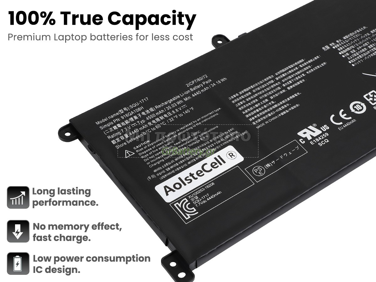 Δεν υπάρχει καμία διαφορά, εκτός από το ότι οι μπαταρίες μας δεν φέρουν ετικέτα. Όλες οι επαναφορτιζόμενες μπαταρίες που είναι διαθέσιμες στο xxx.com είναι εφεδρικές μπαταρίες του αρχικού κατασκευαστή. Χρησιμοποιούν τα ίδια έξυπνα τσιπ και στοιχεία όπως οι αυθεντικές, οπότε η απόδοση και η συμβατότητα της μπαταρίας Hasee SQU-1717 είναι παρόμοια ή και καλύτερη από την αυθεντικήεπαναφορτιζόμενη μπαταρία. Αυτό θα αφαιρέσει το τίμημα της μάρκας, διατηρώντας ταυτόχρονα την ποιότητα. Πολλοί καταναλωτές πιστεύουν ότι οι αυθεντικές μπαταρίες λειτουργούν καλύτερα. Στην πραγματικότητα, πολλές μάρκες μπαταριών για φορητούς υπολογιστές κατασκευάζονται επίσης από εξαρτήματα από τρίτους (όπως Samsung, LG, κ.λπ.). Ακριβώς όπως η CPU ενός φορητού υπολογιστή δεν παράγεται από τηνίδιαεταιρεία υπολογιστών.