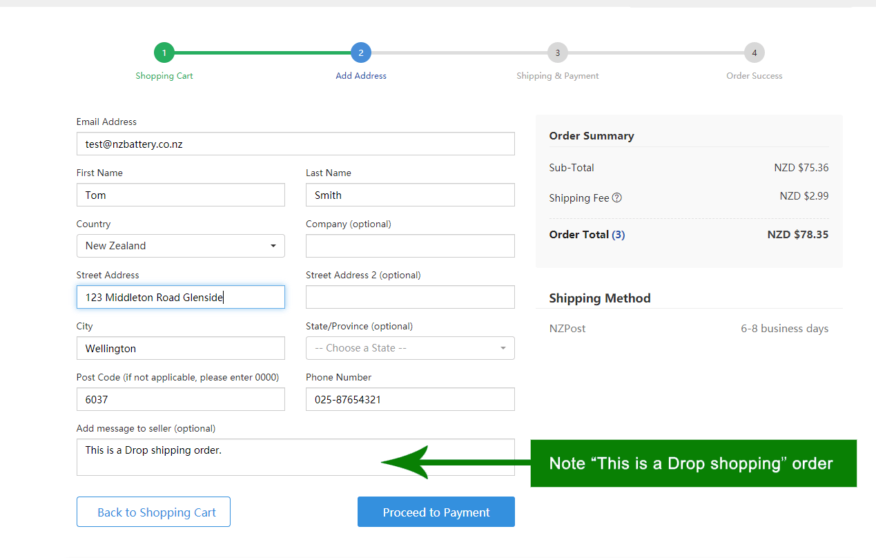 3Η πρώτη σελίδα ολοκλήρωσης παραγγελίας είναι η "Προσθήκη Διεύθυνσης Αποστολής", όπου μπορείτε να προσθέσετε ή να αλλάξετε τη διεύθυνση αποστολής, και να καταχωρήσετε "Ειδικές Οδηγίες ή Σχόλια" για την παραγγελία σας, π.χ. αποστολή σε διαφορετική διεύθυνση dropshipping.