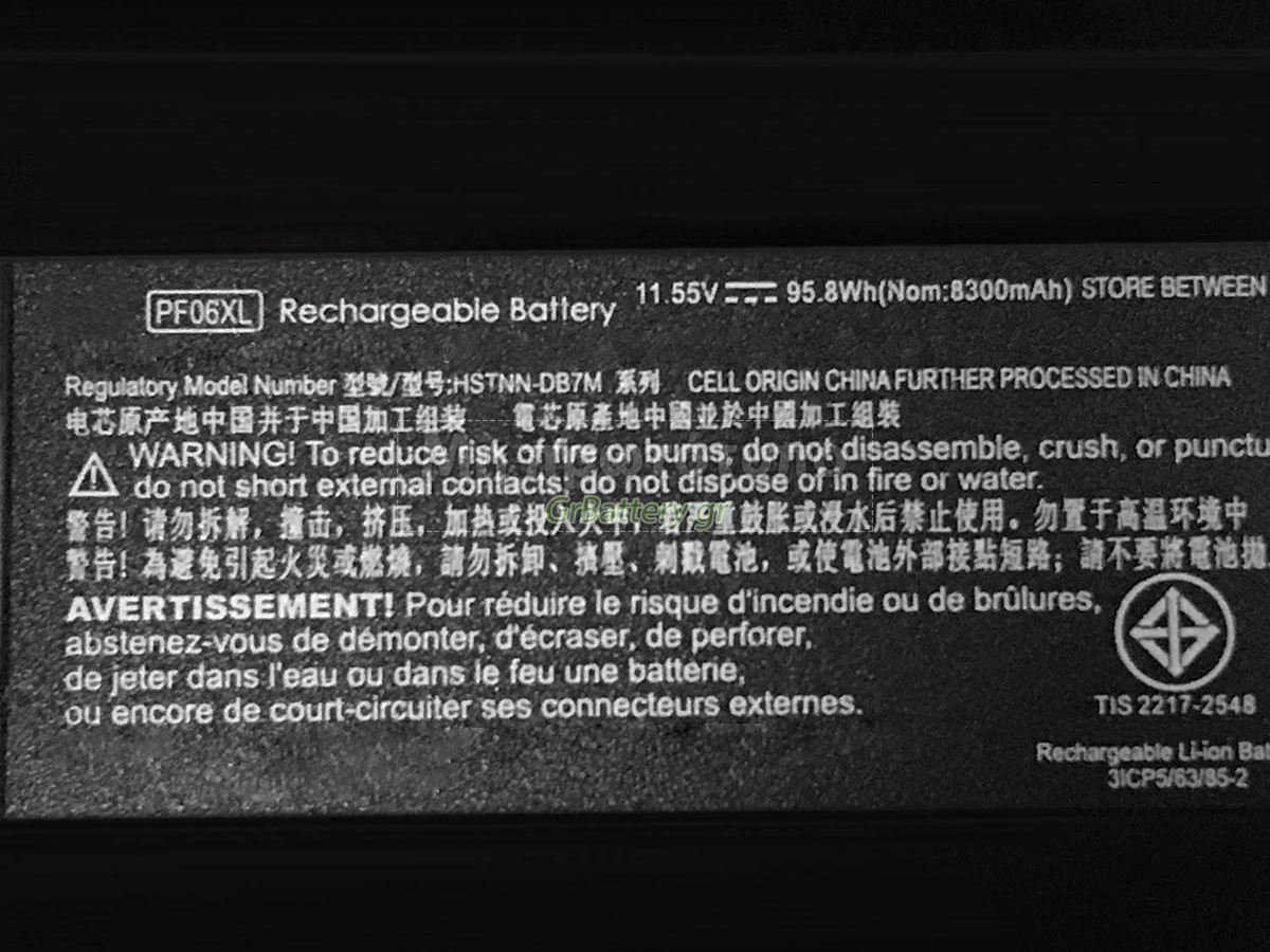 Δεν συνιστάται η αφαίρεση της μπαταρίας, έτσι ώστε να αποφευχθεί η συνέχιση της λειτουργίας της τροφοδοσίας εναλλασσόμενου ρεύματος σε περίπτωση ξαφνικής διακοπής, χωρίς απώλεια δεδομένων. Αν αφαιρεθεί, συνιστάται η περιτύλιξη της μπαταρίας HP HSTNN-DB7M στην πλαστική μεμβράνη και η τοποθέτηση σε στεγνό και δροσερό μέρος, και να θυμάστε να χρησιμοποιείτε την μπαταρία τουλάχιστον μια φορά το μήνα και να την φορτίζετε για να αποφύγετε την απώλεια δράσης της μπαταρίας.