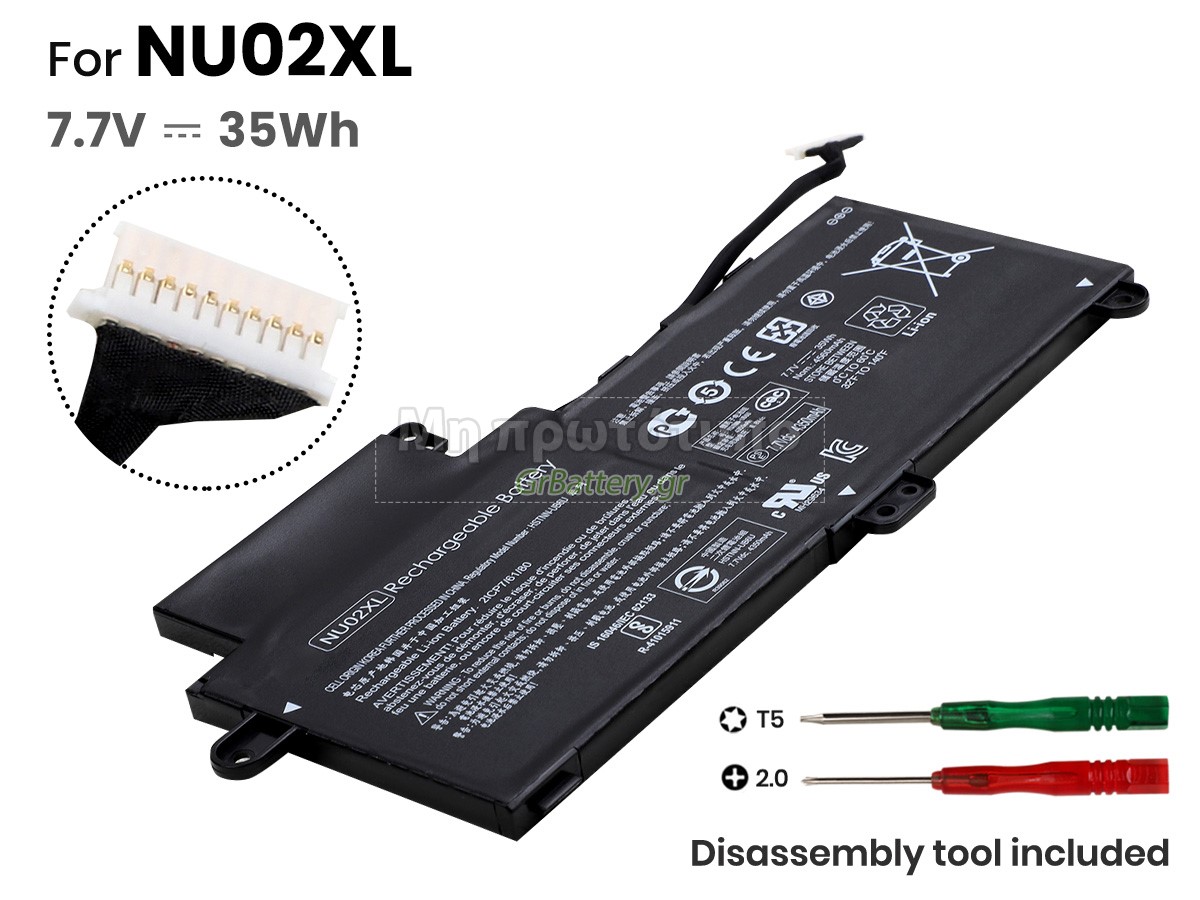 Δεν συνιστάται η αφαίρεση της μπαταρίας, έτσι ώστε να αποφευχθεί η συνέχιση της λειτουργίας της τροφοδοσίας εναλλασσόμενου ρεύματος σε περίπτωση ξαφνικής διακοπής, χωρίς απώλεια δεδομένων. Αν αφαιρεθεί, συνιστάται η περιτύλιξη της μπαταρίας HP NU02035XL-PR στην πλαστική μεμβράνη και η τοποθέτηση σε στεγνό και δροσερό μέρος, και να θυμάστε να χρησιμοποιείτε την μπαταρία τουλάχιστον μια φορά το μήνα και να την φορτίζετε για να αποφύγετε την απώλεια δράσης της μπαταρίας.
