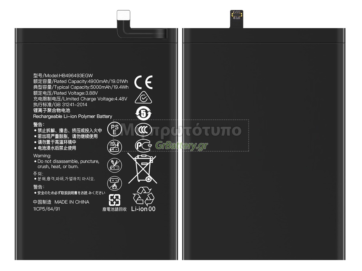 Δεν συνιστάται η αφαίρεση της μπαταρίας, έτσι ώστε να αποφευχθεί η συνέχιση της λειτουργίας της τροφοδοσίας εναλλασσόμενου ρεύματος σε περίπτωση ξαφνικής διακοπής, χωρίς απώλεια δεδομένων. Αν αφαιρεθεί, συνιστάται η περιτύλιξη της μπαταρίας Huawei NOVA Y90 CTR-LX1 στην πλαστική μεμβράνη και η τοποθέτηση σε στεγνό και δροσερό μέρος, και να θυμάστε να χρησιμοποιείτε την μπαταρία τουλάχιστον μια φορά το μήνα και να την φορτίζετε για να αποφύγετε την απώλεια δράσης της μπαταρίας.