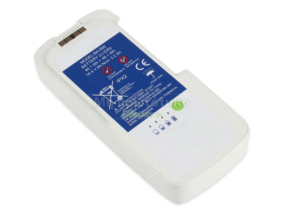 Δεν συνιστάται η αφαίρεση της μπαταρίας, έτσι ώστε να αποφευχθεί η συνέχιση της λειτουργίας της τροφοδοσίας εναλλασσόμενου ρεύματος σε περίπτωση ξαφνικής διακοπής, χωρίς απώλεια δεδομένων. Αν αφαιρεθεί, συνιστάται η περιτύλιξη της μπαταρίας Inogen IO-500 στην πλαστική μεμβράνη και η τοποθέτηση σε στεγνό και δροσερό μέρος, και να θυμάστε να χρησιμοποιείτε την μπαταρία τουλάχιστον μια φορά το μήνα και να την φορτίζετε για να αποφύγετε την απώλεια δράσης της μπαταρίας.