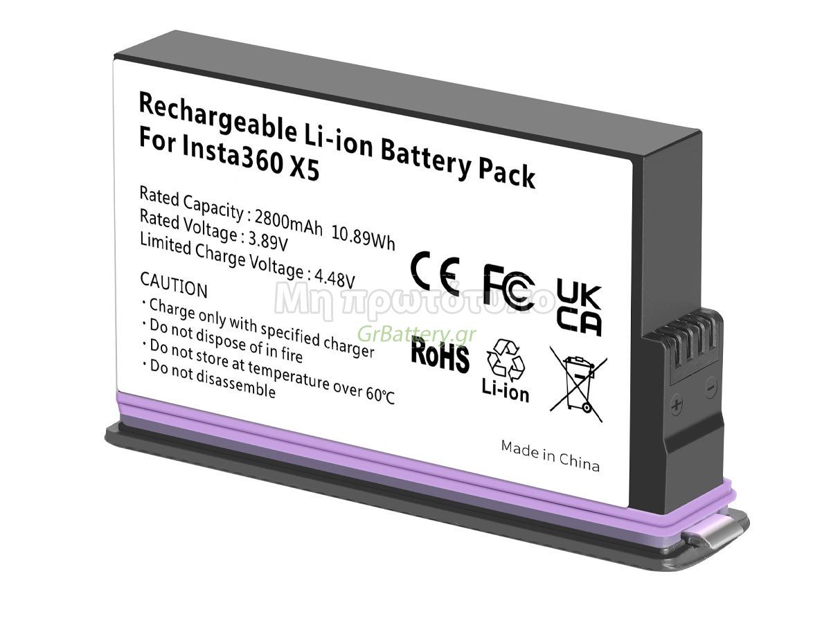 Δεν συνιστάται η αφαίρεση της μπαταρίας, έτσι ώστε να αποφευχθεί η συνέχιση της λειτουργίας της τροφοδοσίας εναλλασσόμενου ρεύματος σε περίπτωση ξαφνικής διακοπής, χωρίς απώλεια δεδομένων. Αν αφαιρεθεί, συνιστάται η περιτύλιξη της μπαταρίας Insta360 JH-X5 στην πλαστική μεμβράνη και η τοποθέτηση σε στεγνό και δροσερό μέρος, και να θυμάστε να χρησιμοποιείτε την μπαταρία τουλάχιστον μια φορά το μήνα και να την φορτίζετε για να αποφύγετε την απώλεια δράσης της μπαταρίας.
