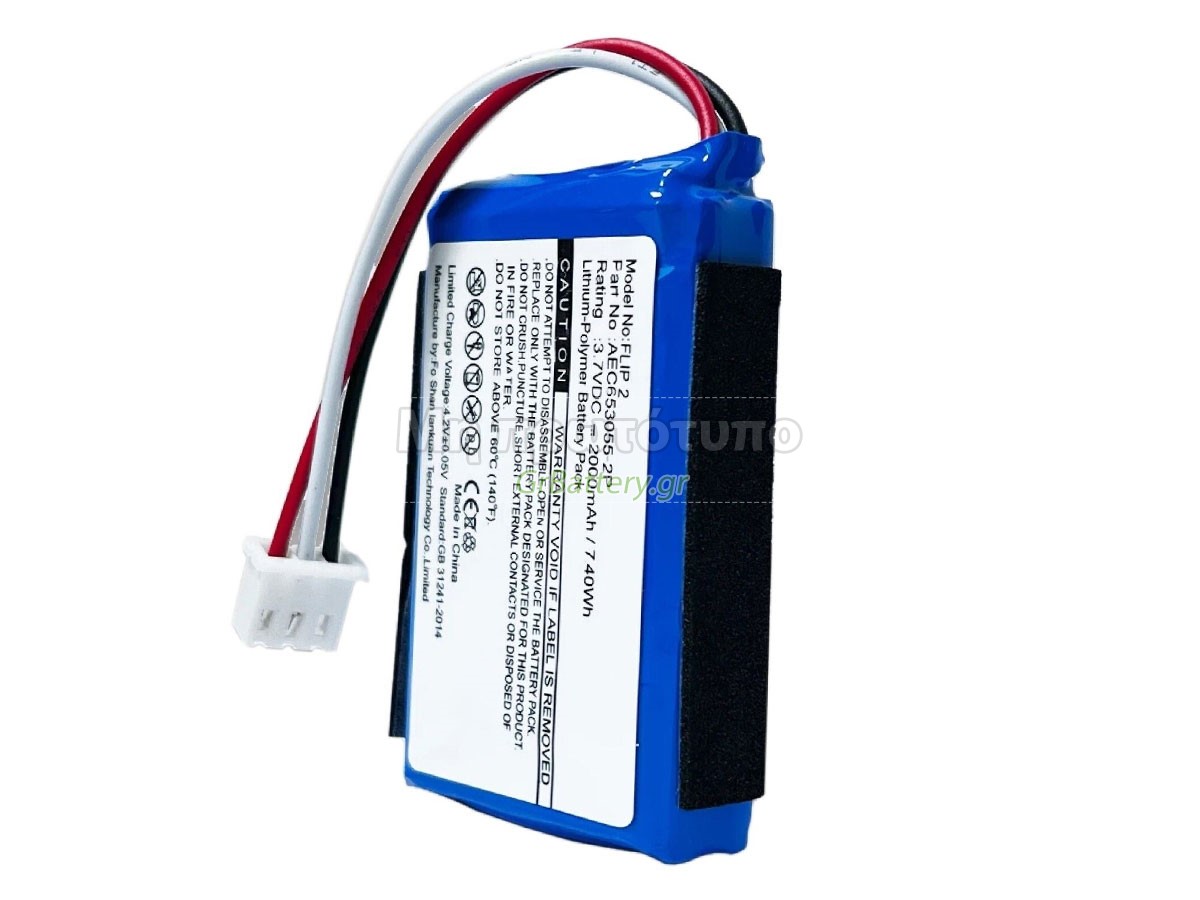 Δεν συνιστάται η αφαίρεση της μπαταρίας, έτσι ώστε να αποφευχθεί η συνέχιση της λειτουργίας της τροφοδοσίας εναλλασσόμενου ρεύματος σε περίπτωση ξαφνικής διακοπής, χωρίς απώλεια δεδομένων. Αν αφαιρεθεί, συνιστάται η περιτύλιξη της μπαταρίας JBL FLIP2(2013) στην πλαστική μεμβράνη και η τοποθέτηση σε στεγνό και δροσερό μέρος, και να θυμάστε να χρησιμοποιείτε την μπαταρία τουλάχιστον μια φορά το μήνα και να την φορτίζετε για να αποφύγετε την απώλεια δράσης της μπαταρίας.