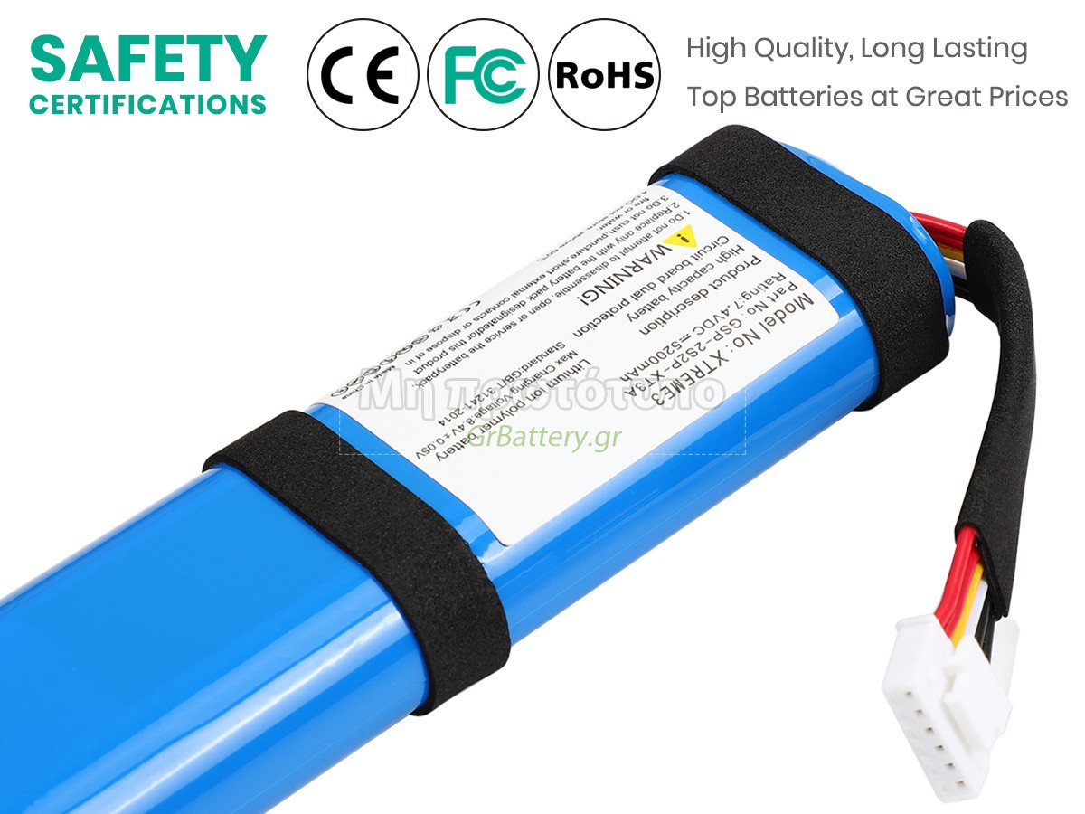 Η εντελώς νέα μας εφεδρική μπαταρία JBL GSP-2S2P-XT3A αποτελείται από τα καλύτερα στοιχεία και εξαρτήματα. Οι μπαταρίες JBL GSP-2S2P-XT3A που παρέχονται στο grbattery.gr έχουν περάσει δοκιμές UN38.3, RCM, CE, UL, ROHS, ISO9001/ISO9002 και άλλες διεθνείς πιστοποιήσεις. Προκειμένου να ελαχιστοποιηθούν οι κίνδυνοι ασφαλείας και να διασφαλιστεί η καλή εμπειρία του χρήστη, η μπαταρία ήχος JBL GSP-2S2P-XT3A χρησιμοποιεί μια ποικιλία μέτρων προστασίας. Για παράδειγμα, προστασία θερμοκρασίας, προστασία κυκλώματος, προστασία υπερφόρτισης, προστασία υλικού, όριο ρεύματος εξόδου και άλλα μέτρα προστασίας.