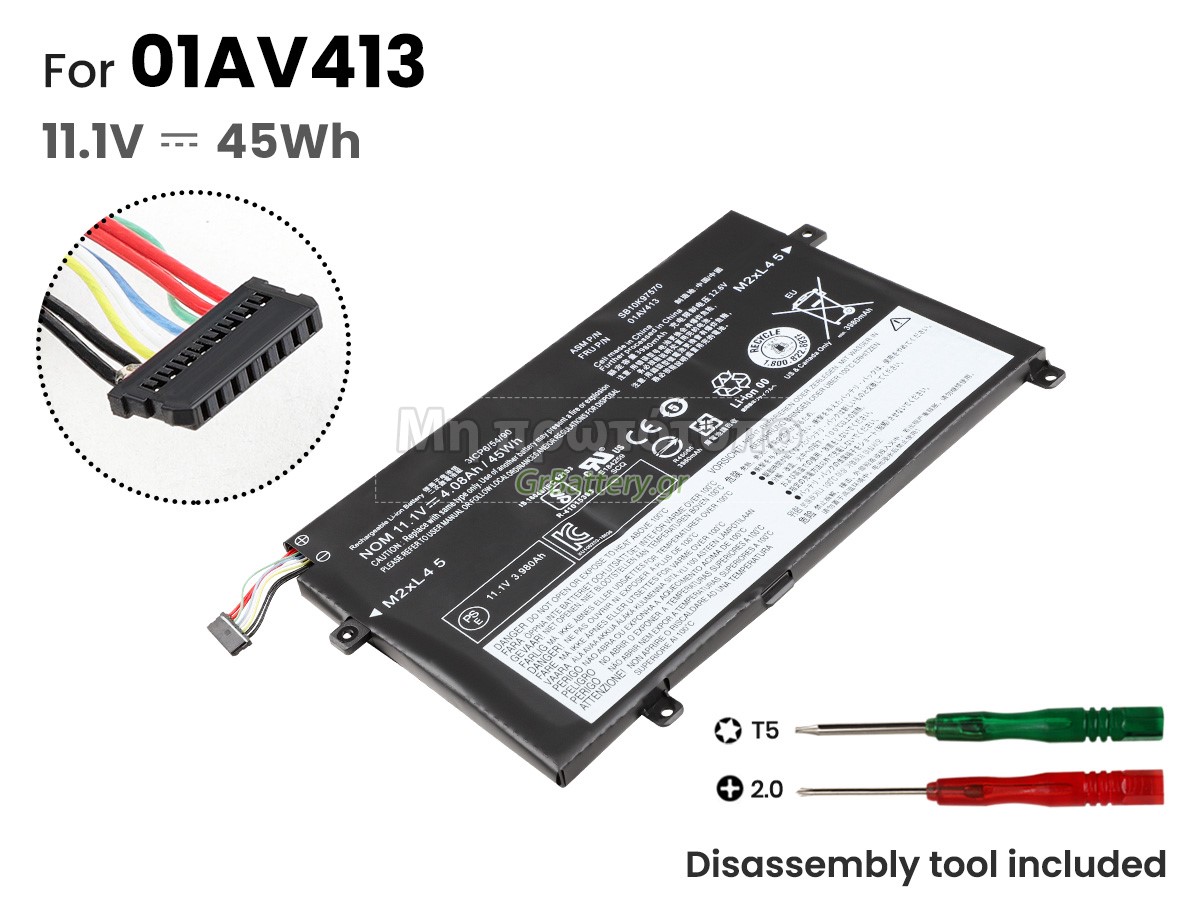 Δεν συνιστάται η αφαίρεση της μπαταρίας, έτσι ώστε να αποφευχθεί η συνέχιση της λειτουργίας της τροφοδοσίας εναλλασσόμενου ρεύματος σε περίπτωση ξαφνικής διακοπής, χωρίς απώλεια δεδομένων. Αν αφαιρεθεί, συνιστάται η περιτύλιξη της μπαταρίας Lenovo 01AV413 στην πλαστική μεμβράνη και η τοποθέτηση σε στεγνό και δροσερό μέρος, και να θυμάστε να χρησιμοποιείτε την μπαταρία τουλάχιστον μια φορά το μήνα και να την φορτίζετε για να αποφύγετε την απώλεια δράσης της μπαταρίας.